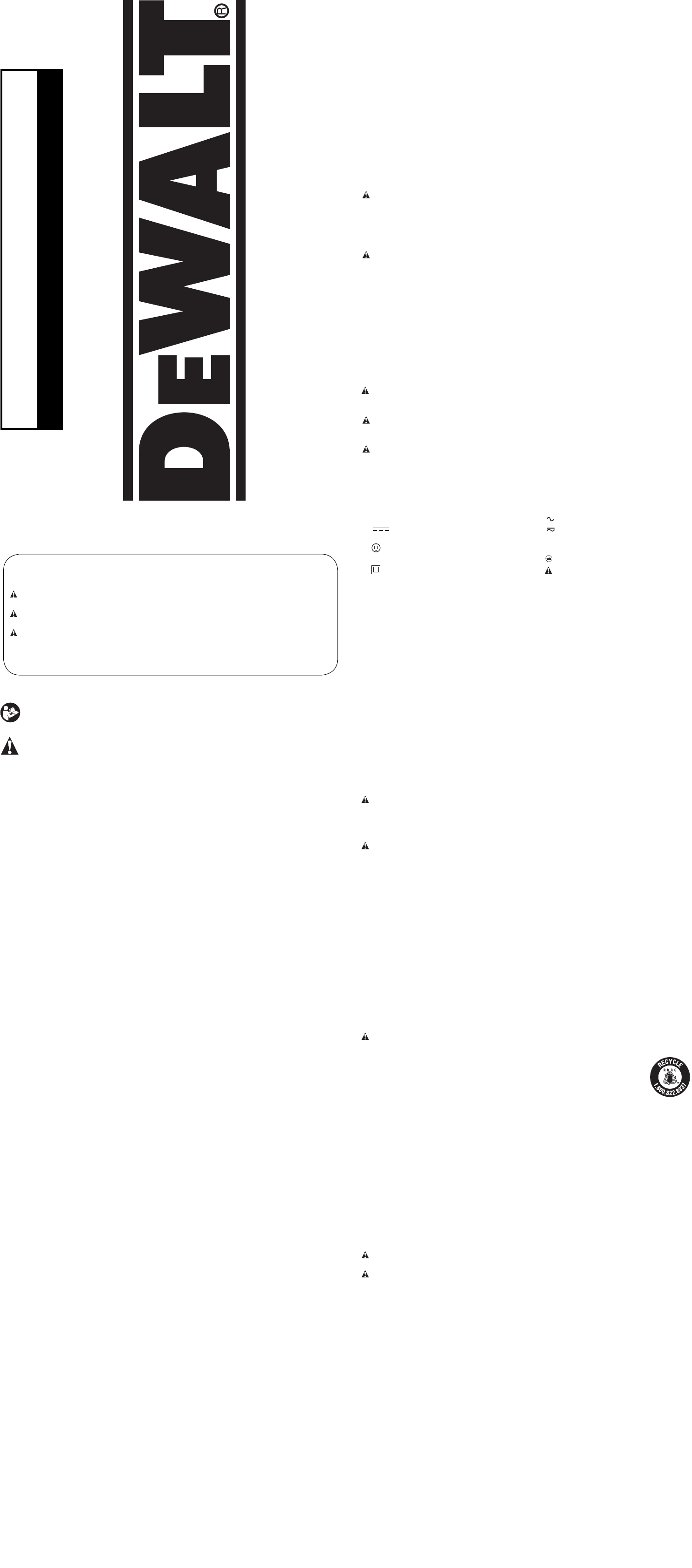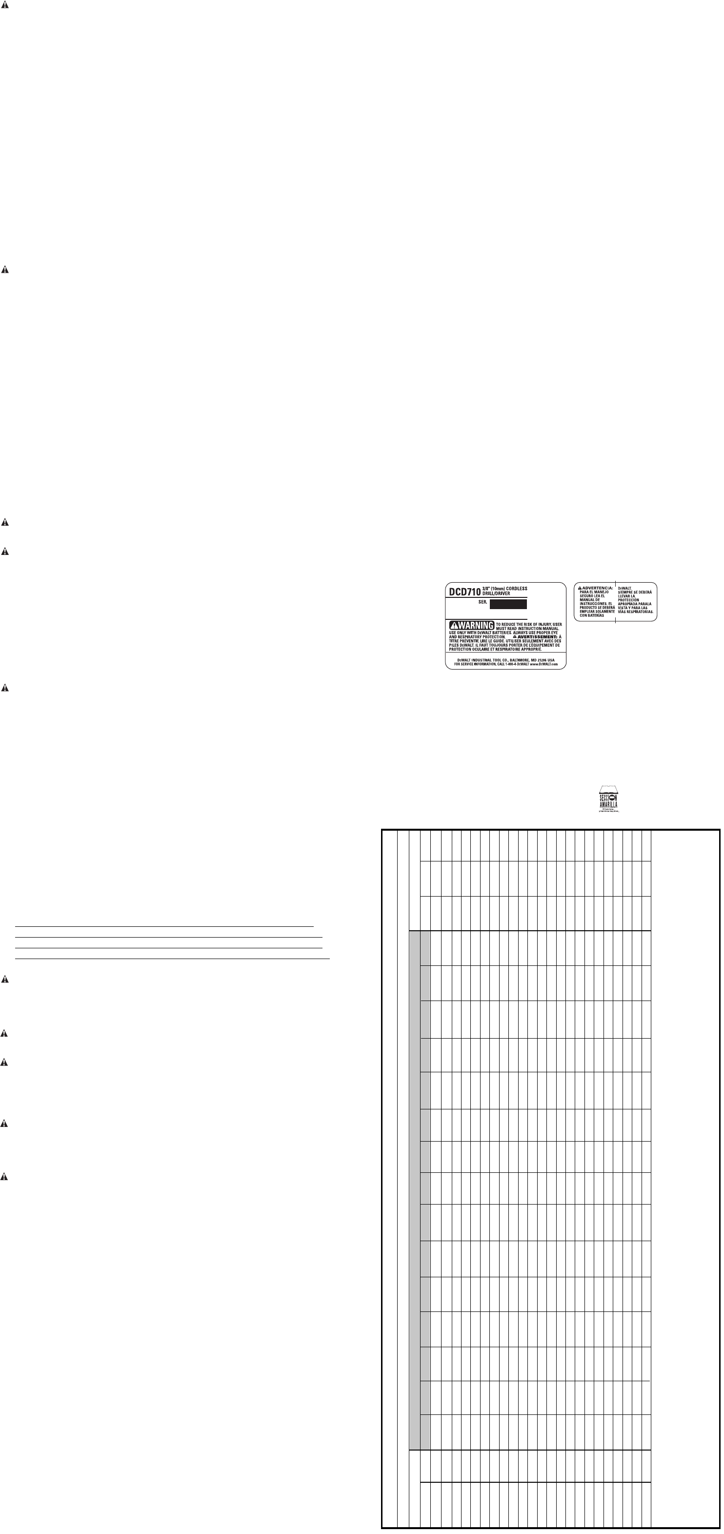 de advertencia se vuelven ilegibles o faltan, llame al 1-800-4-DEWALT para que se le
