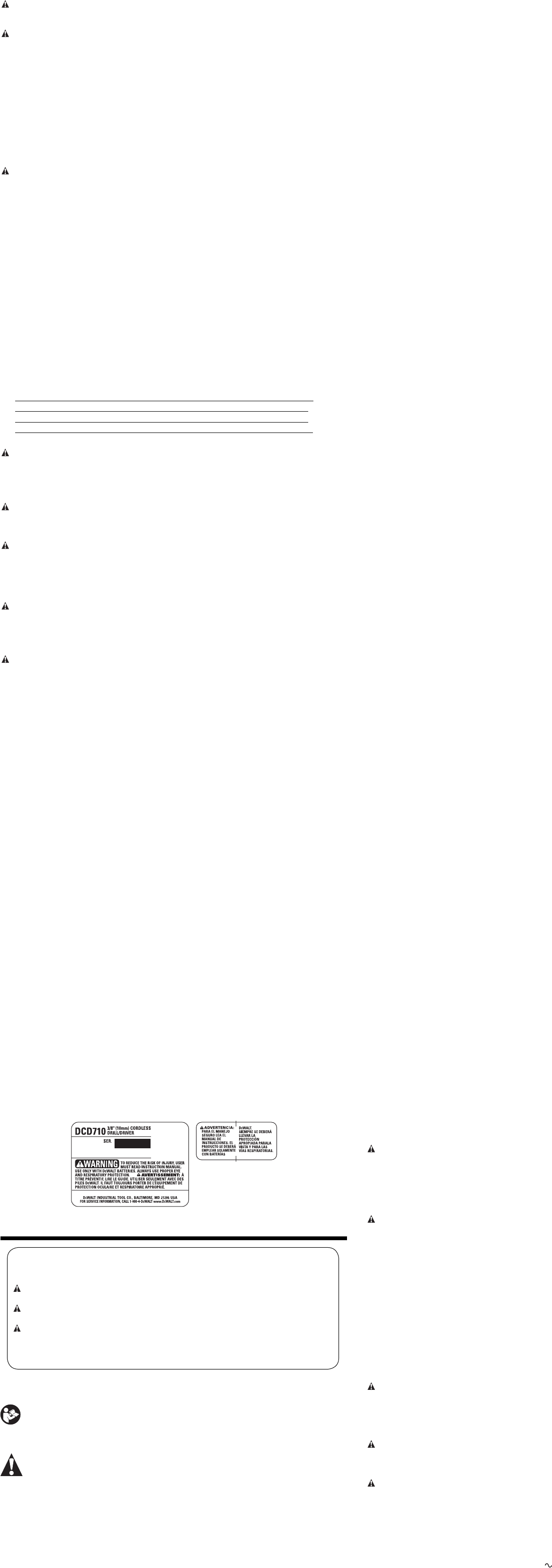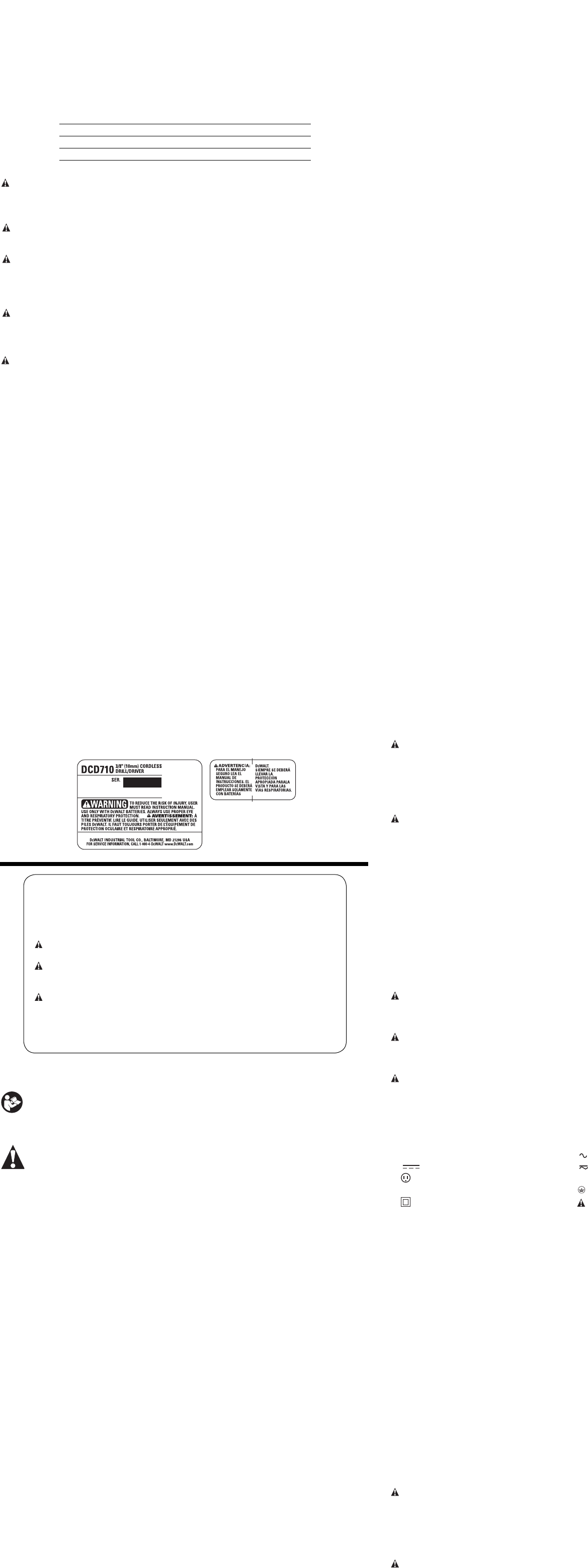 User Manual: dewalt dcd710s2 DeWalt Cordless Drill DCD710S2 User Guide |
