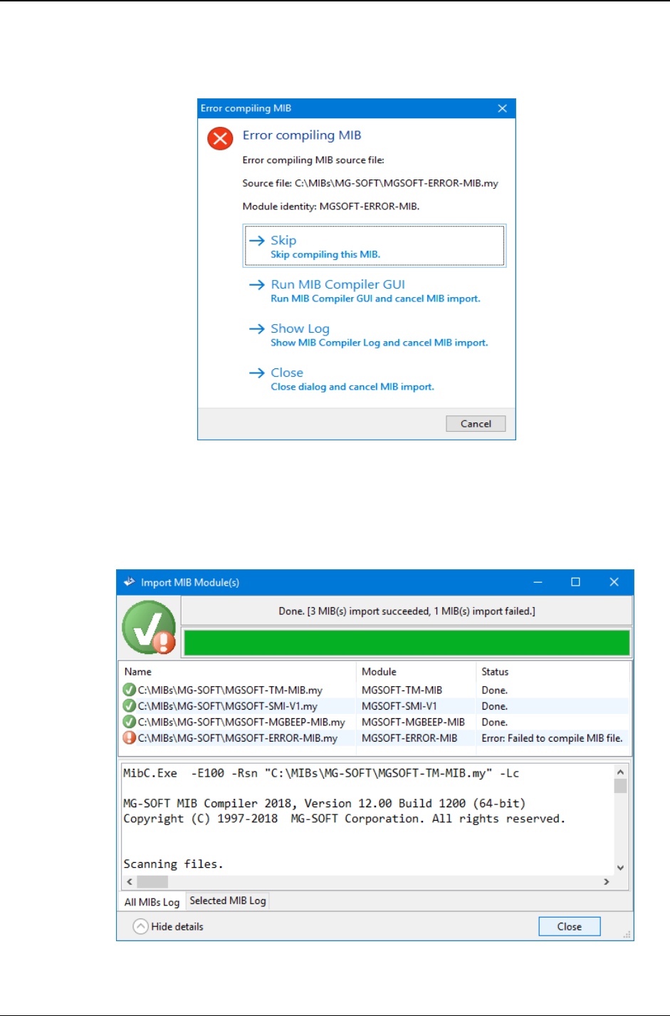 Following is the list of file formats supported by MG-SOFT MIB Browser 2018, Version 16.x,