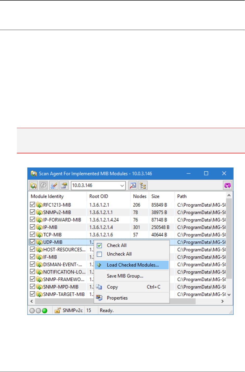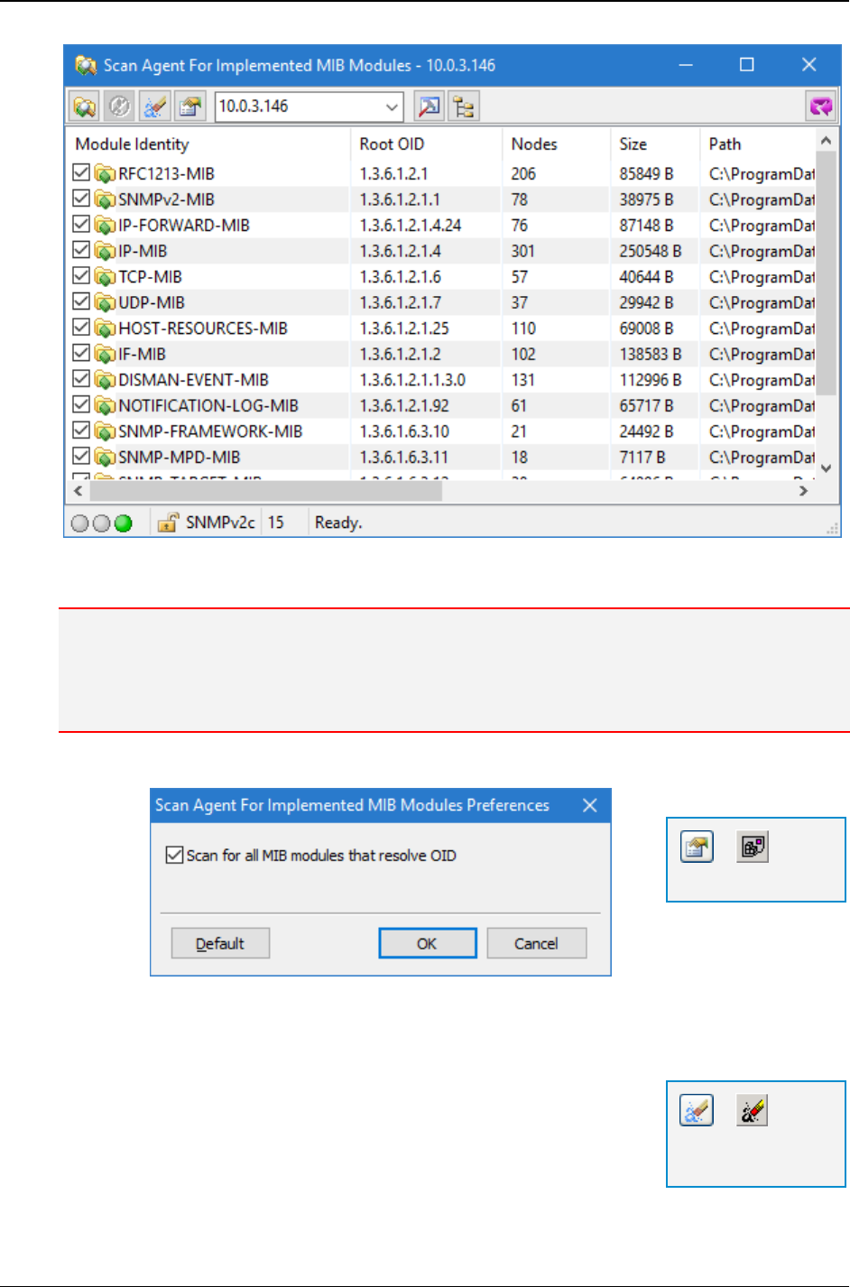 - 16 SCAN SNMP AGENT FOR IMPLEMENTED MIB MODULES