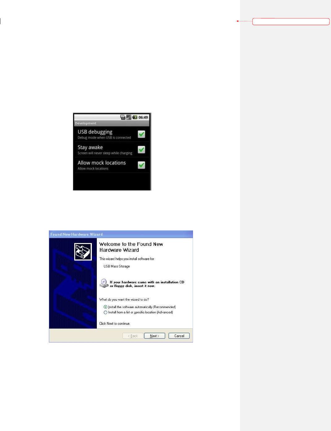 2. Check the “USB debugging” option in the device (route: Settings->Application settings