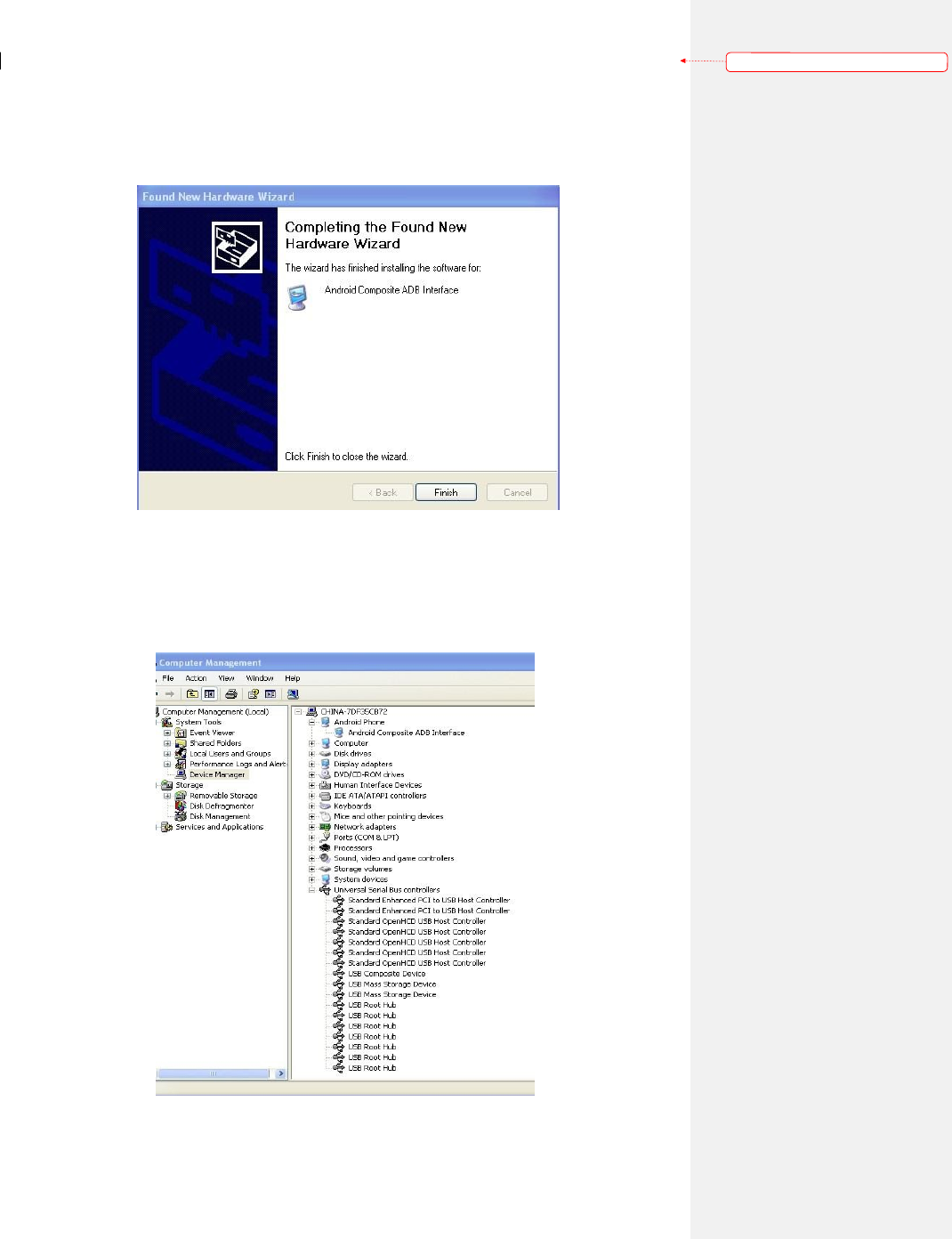 “hardware” tab), newly added Android Composite ADB Interface device (under Android
