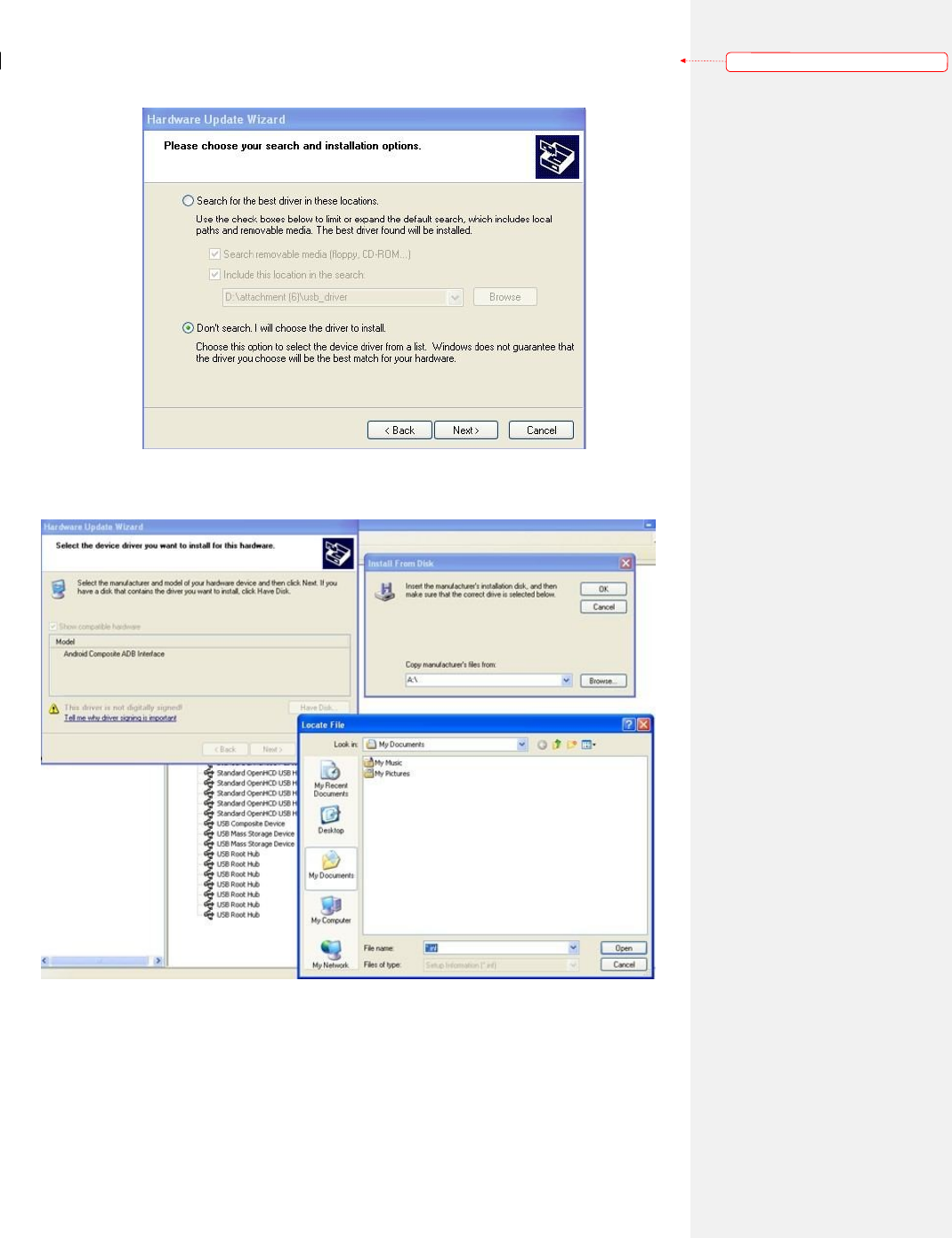 If failed to operate, select“Don’t search. I will chose the driver to install” in the dialog