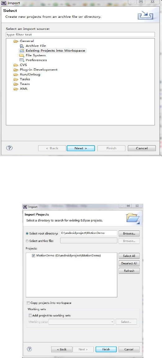1. Open eclipse, click the files menu, select “import”, in the displayed dialog box, select “Existing
