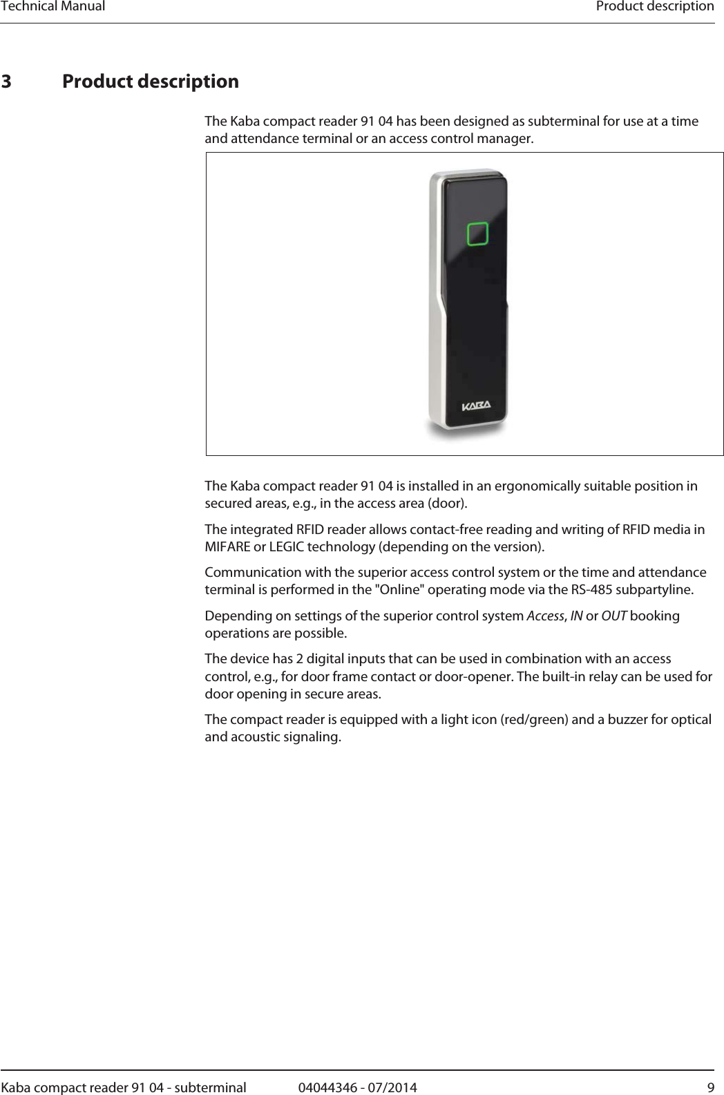 dormakaba Deutschland KCR9104-L1 RFID Reader User Manual