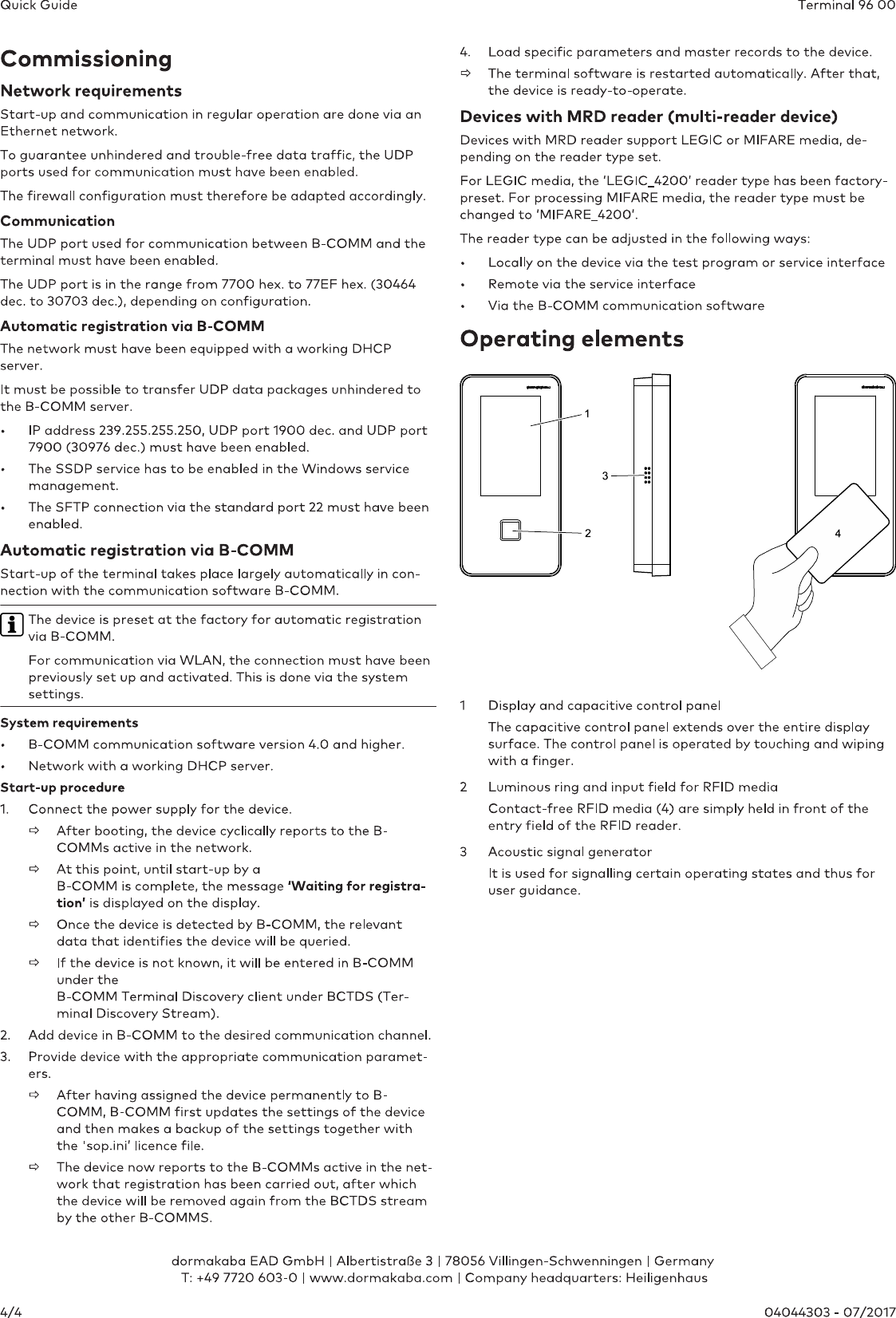 dormakaba EAD GmbH data collection terminal QG 9600 K6 201707 en