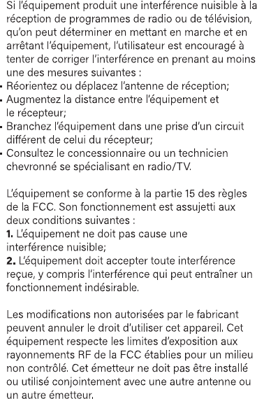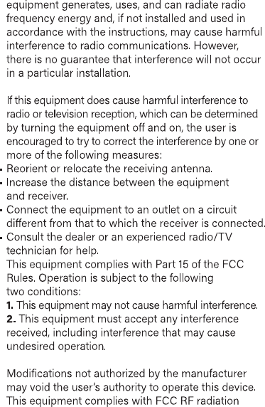 This device complies with Part 15 of the FCC Rules. Operation is subject to the following