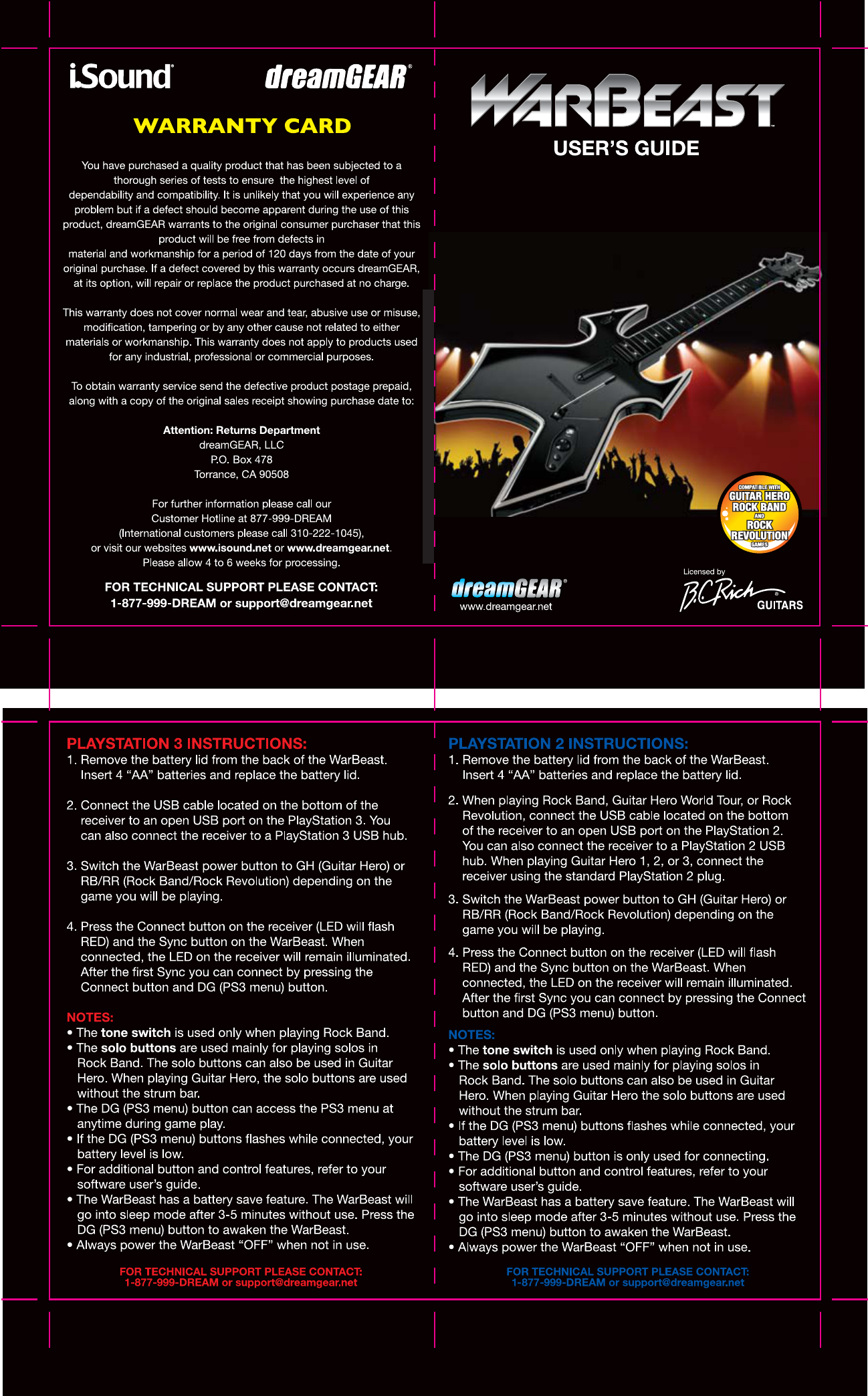 dreamGEAR DG1334A 2.4GHz Wirelss Device User Manual WarBeast Users Guide proof