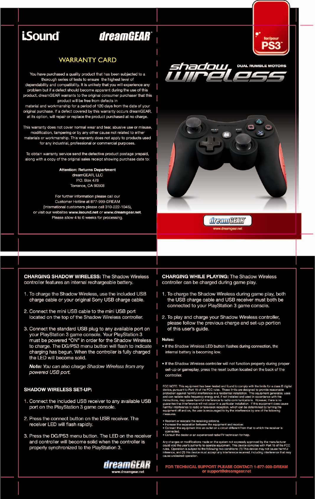 dreamGEAR DG1343 PS3 SHADOW WIRELESS CONTROLLER WITH RUMBLE User Manual C8ABD2B3B4ABD5E6CDBCC6AC