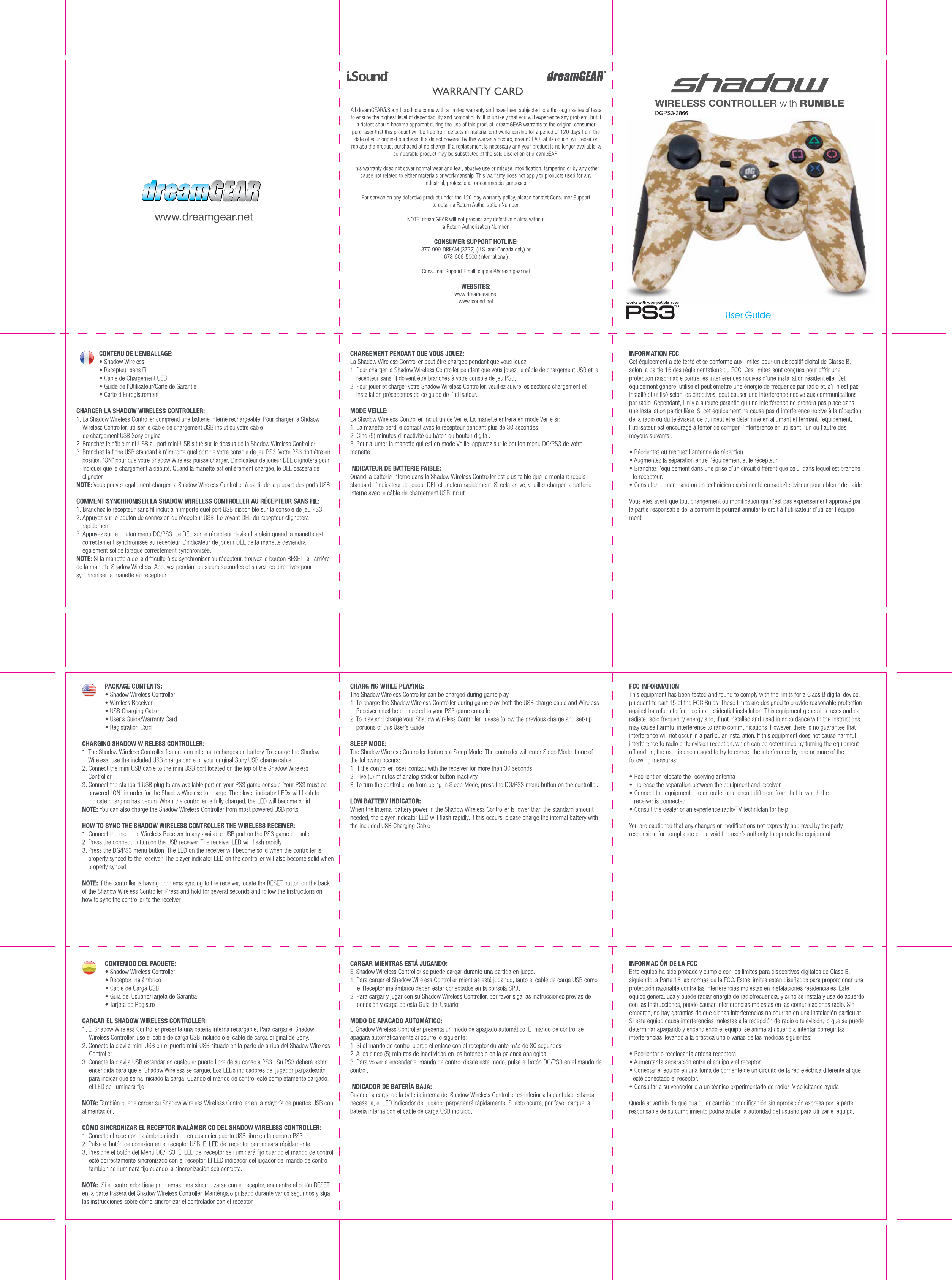dreamGEAR, LLC PS3 SHADOW WIRELESS CONTROLLER PROOF DGPS3 3866 SHADOW WIRELESS CONTROLLER UG V2