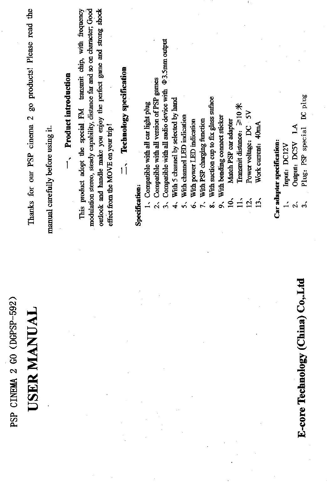 dreamGEAR, LLC DG-1 SOUND PSP CINEMA 2 GO FCC ID:TW8PSP592