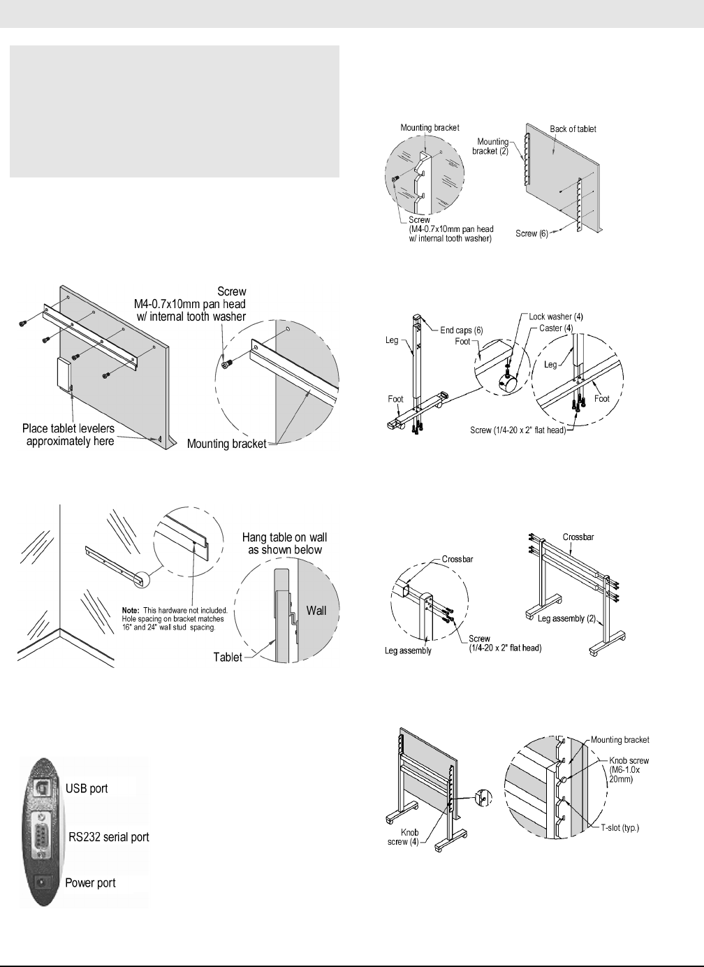 C. Mount the tablet on a wall or on the optional floor stand (page 2).