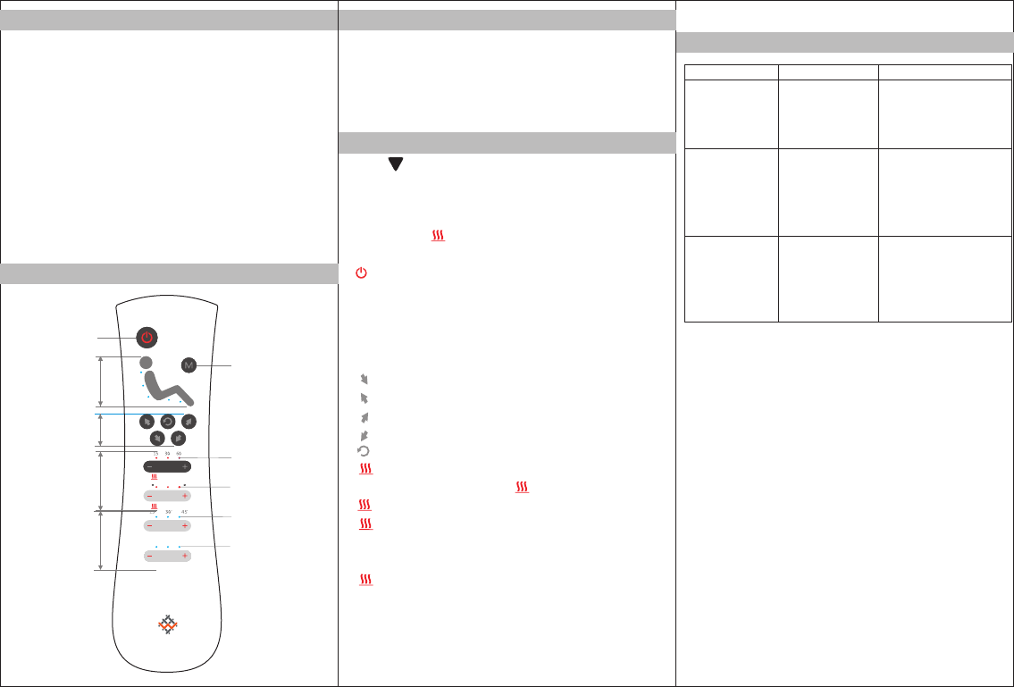 1st press: Turn on massage function and all vibrators work in 3 modes cyclically.
