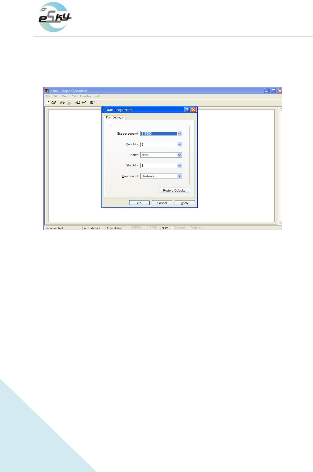 2) In Port Settings, change communication speed (bits per second) to 115200bps,