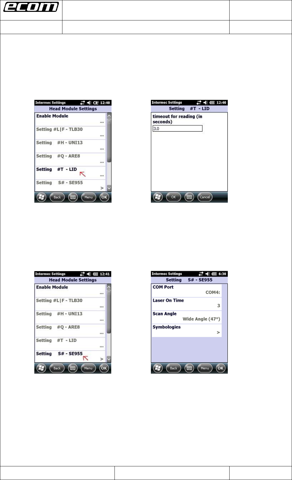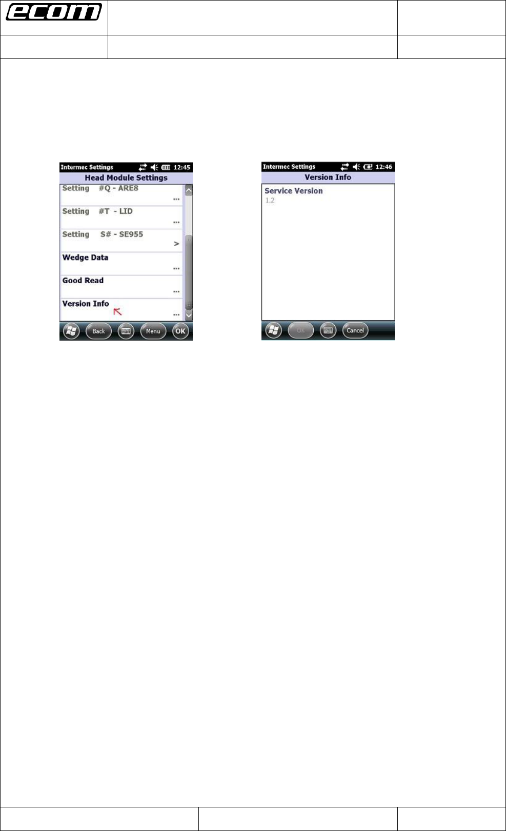 on your device (see 1.10 Version Info). The Head Module Settings are located in the Intermec Settings.