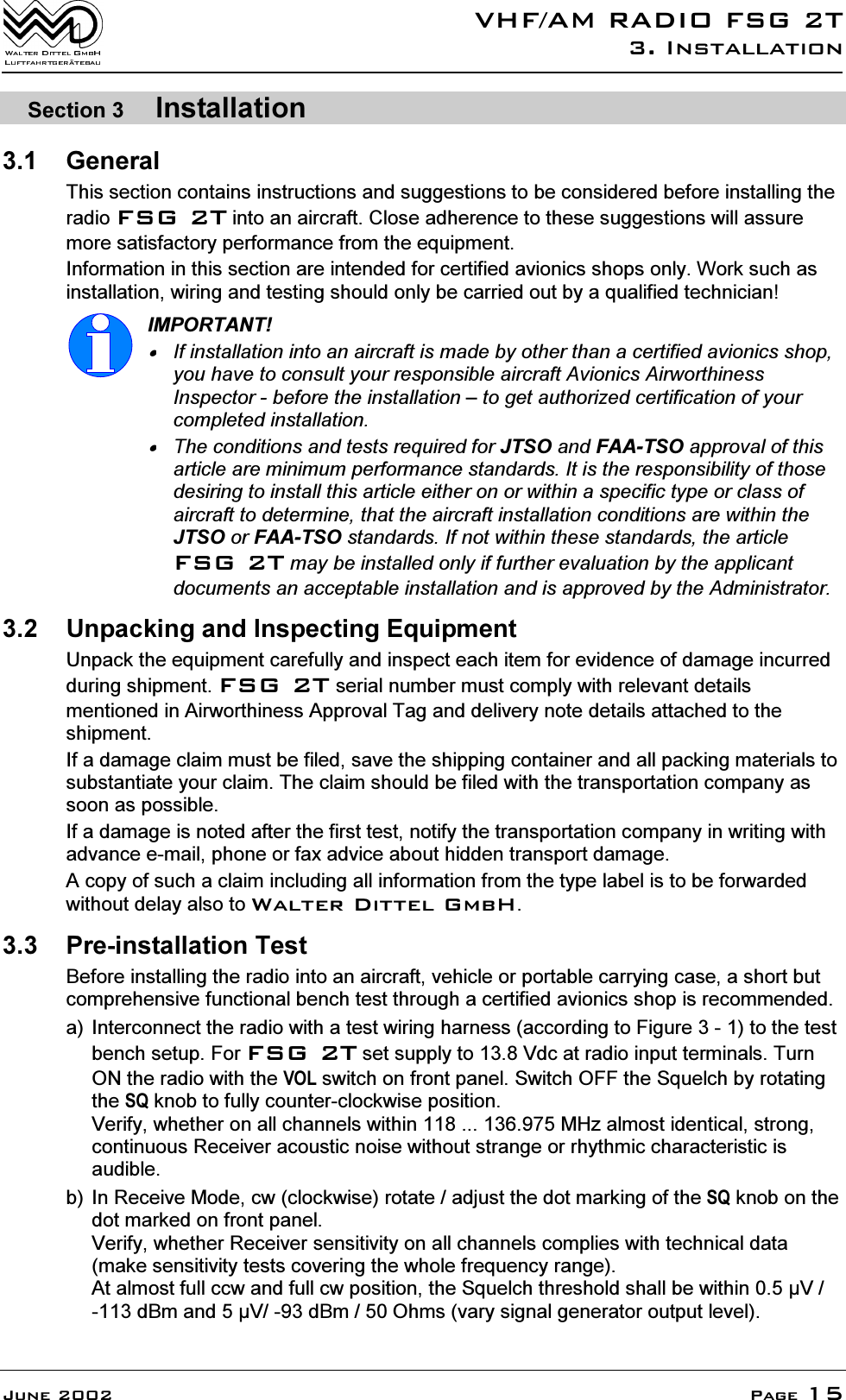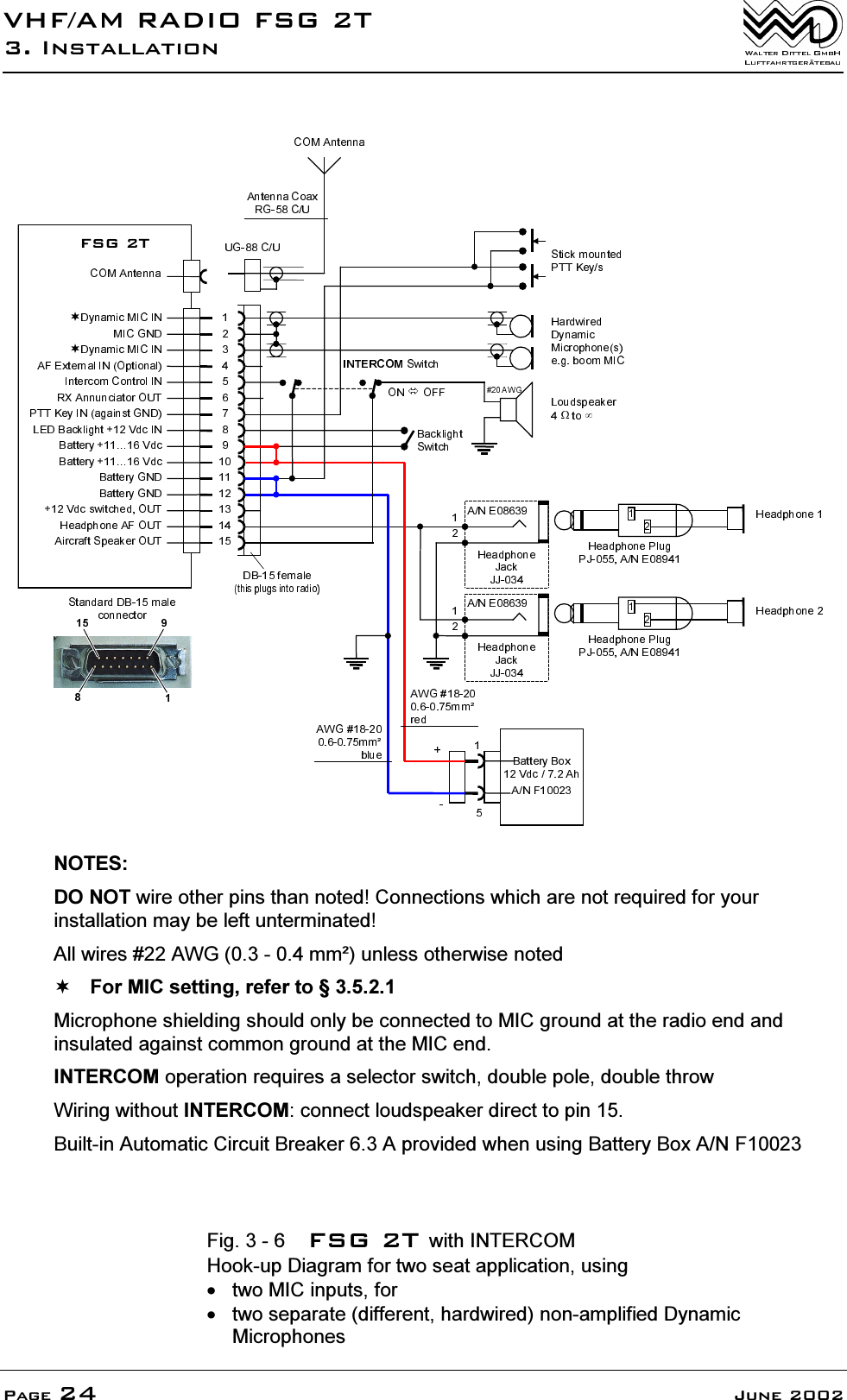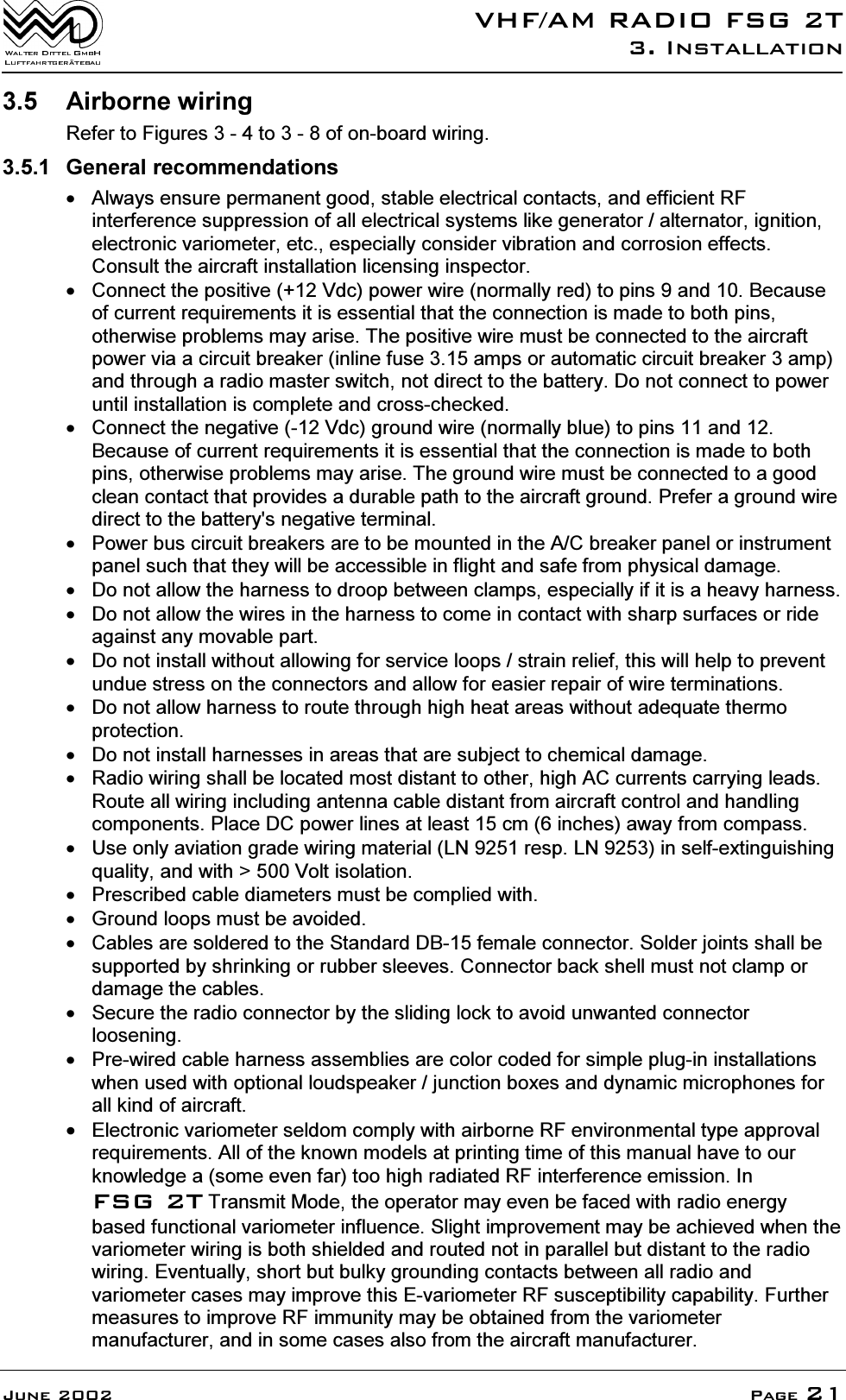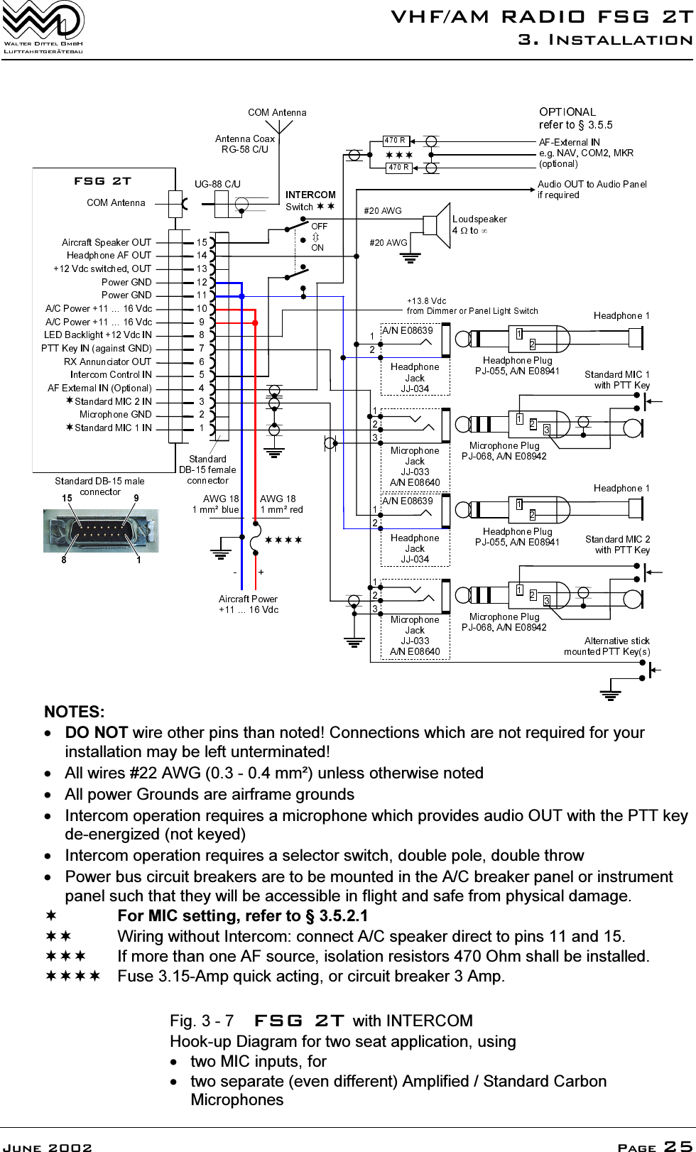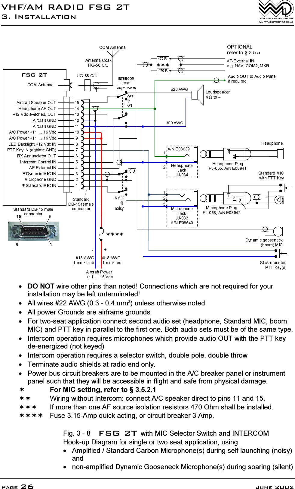 f u n k e AVIONICS FSG2T VHF/AM COM Transceiver FSG 2T User Manual 2T Installation Manual Part 1