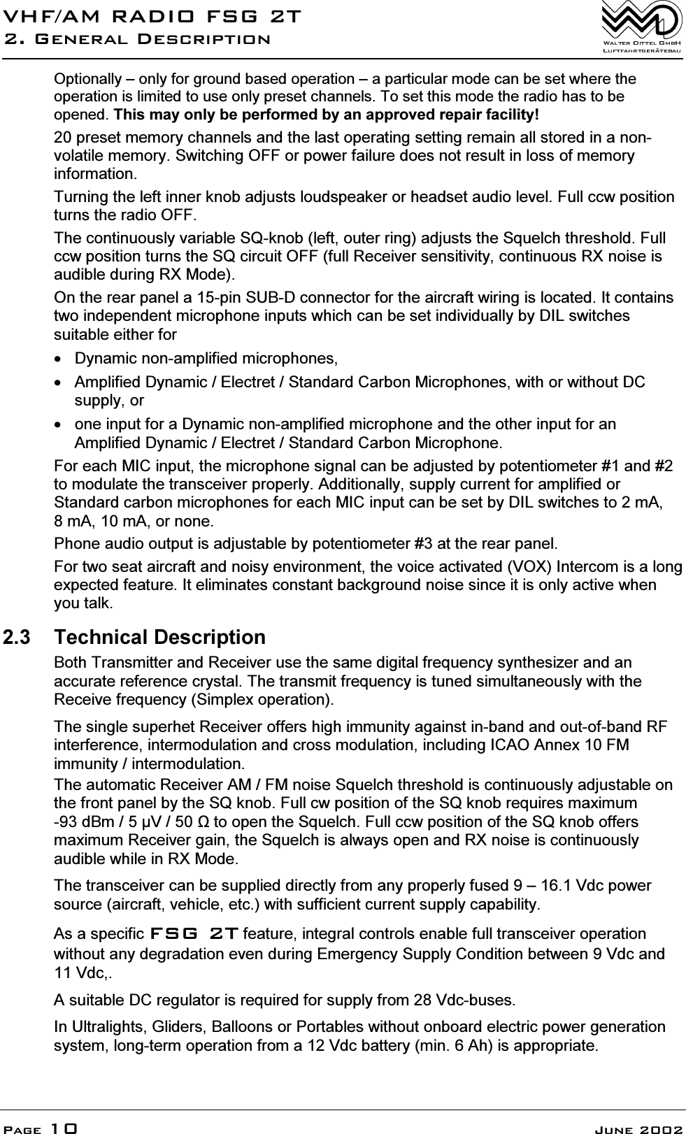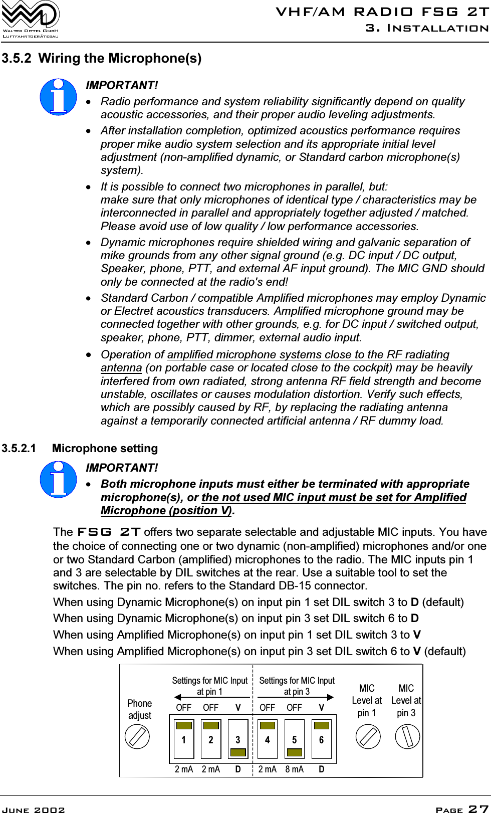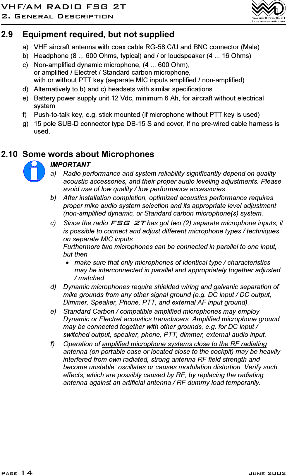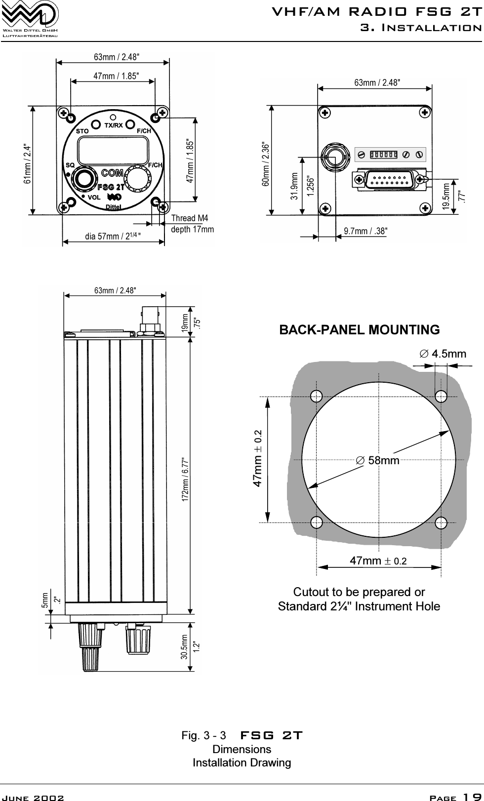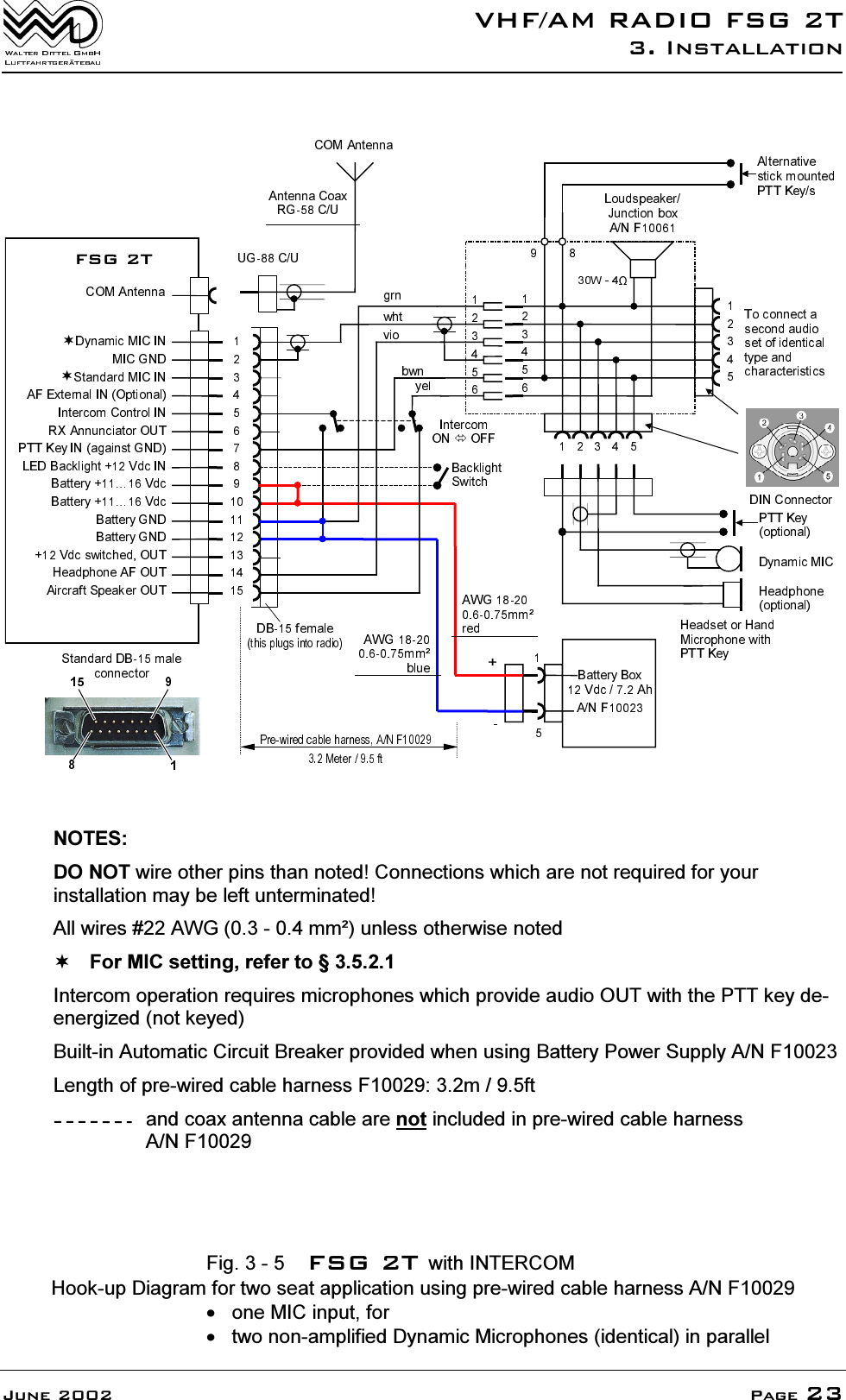 f u n k e AVIONICS FSG2T VHF/AM COM Transceiver FSG 2T User Manual 2T Installation Manual Part 1