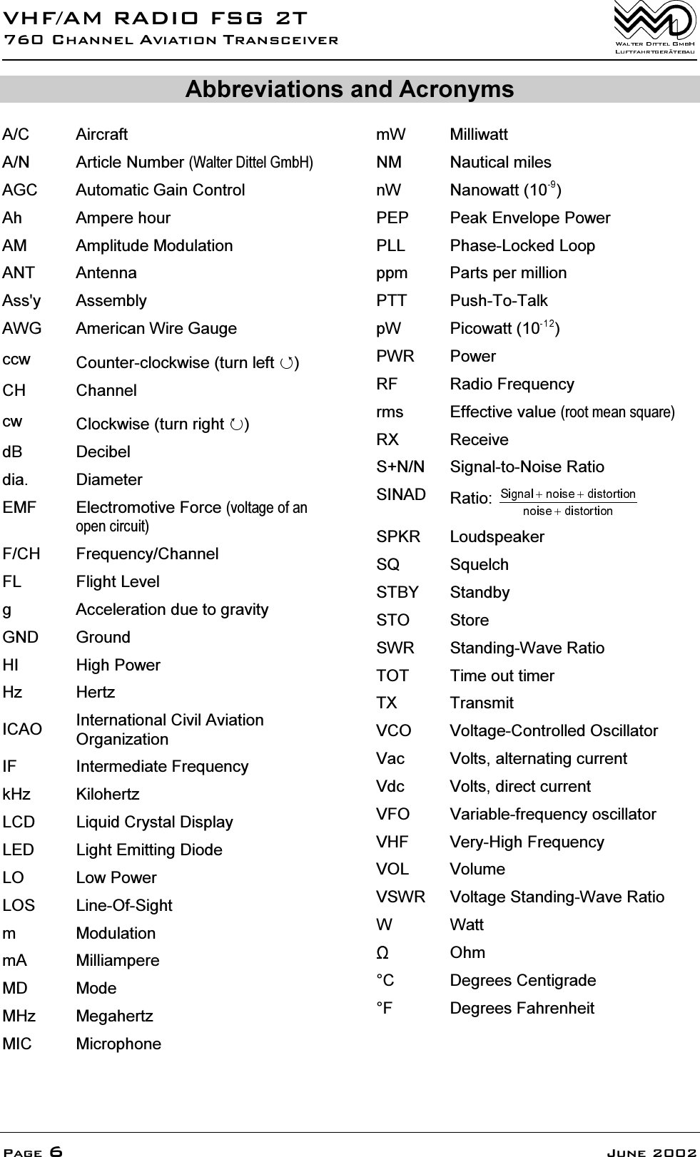![9+)$05$',2)6*7&+$11(/$9,$7,2175$16&(,9(53DJH-XQH$EEUHYLDWLRQVDQG$FURQ\PV$& $LUFUDIW$1 $UWLFOH1XPEHU:DOWHU'LWWHO*PE+$*& $XWRPDWLF*DLQ&RQWURO$K $PSHUHKRXU$0 $PSOLWXGH0RGXODWLRQ$17 $QWHQQD$VV\ $VVHPEO\$:* $PHULFDQ:LUH*DXJHFFZ &RXQWHUFORFNZLVHWXUQOHIW &+ &KDQQHOFZ &ORFNZLVHWXUQULJKW G% 'HFLEHOGLD 'LDPHWHU(0) (OHFWURPRWLYH)RUFHYROWDJHRIDQRSHQFLUFXLW)&+ )UHTXHQF\&KDQQHO)/ )OLJKW/HYHOJ $FFHOHUDWLRQGXHWRJUDYLW\*1' *URXQG+, +LJK3RZHU+] +HUW],&$2 ,QWHUQDWLRQDO&LYLO$YLDWLRQ2UJDQL]DWLRQ,) ,QWHUPHGLDWH)UHTXHQF\N+] .LORKHUW]/&' /LTXLG&U\VWDO'LVSOD\/(' /LJKW(PLWWLQJ'LRGH/2 /RZ3RZHU/26 /LQH2I6LJKWP 0RGXODWLRQP$ 0LOOLDPSHUH0' 0RGH0+] 0HJDKHUW]0,& 0LFURSKRQHP: 0LOOLZDWW10 1DXWLFDOPLOHVQ: 1DQRZDWW 3(3 3HDN(QYHORSH3RZHU3// 3KDVH/RFNHG/RRSSSP 3DUWVSHUPLOOLRQ377 3XVK7R7DONS: 3LFRZDWW 3:5 3RZHU5) 5DGLR)UHTXHQF\UPV (IIHFWLYHYDOXHURRWPHDQVTXDUH5; 5HFHLYH611 6LJQDOWR1RLVH5DWLR6,1$' 5DWLR63.5 /RXGVSHDNHU64 6TXHOFK67%< 6WDQGE\672 6WRUH6:5 6WDQGLQJ:DYH5DWLR727 7LPHRXWWLPHU7; 7UDQVPLW9&2 9ROWDJH&RQWUROOHG2VFLOODWRU9DF 9ROWVDOWHUQDWLQJFXUUHQW9GF 9ROWVGLUHFWFXUUHQW9)2 9DULDEOHIUHTXHQF\RVFLOODWRU9+) 9HU\+LJK)UHTXHQF\92/ 9ROXPH96:5 9ROWDJH6WDQGLQJ:DYH5DWLR::DWW2KP& 'HJUHHV&HQWLJUDGH) 'HJUHHV)DKUHQKHLW](https://usermanual.wiki/f-u-n-k-e-AVIONICS/FSG2T.2T-Installation-Manual-Part-1/User-Guide-268348-Page-6.png)
