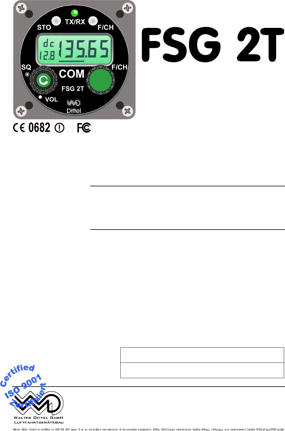 f u n k e AVIONICS FSG2T VHF/AM COM Transceiver FSG 2T User Manual 2T Installation Manual Part 1