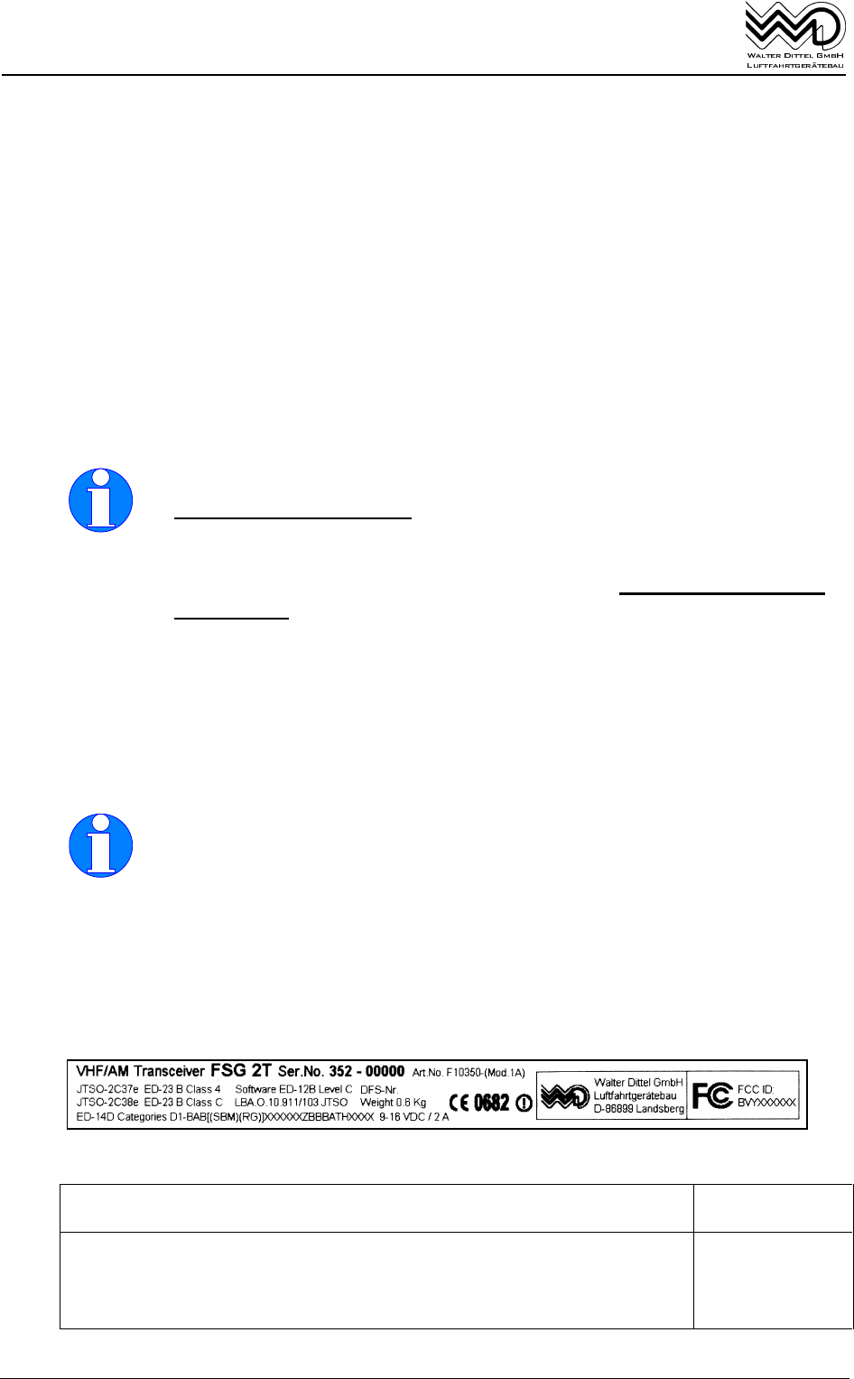 f.u.n.k.e. AVIONICS GmbH VHF/AM COM Transceiver FSG 2T 2T Installation Manual Part 1