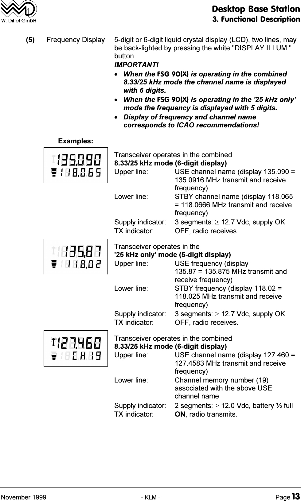 !['HVNWRS%DVH6WDWLRQ)XQFWLRQDO'HVFULSWLRQ1RYHPEHU ./0 3DJH )UHTXHQF\'LVSOD\ GLJLWRUGLJLWOLTXLGFU\VWDOGLVSOD\/&'WZROLQHVPD\EHEDFNOLJKWHGE\SUHVVLQJWKHZKLWH',63/$<,//80EXWWRQ,03257$17:KHQWKH)6*;LVRSHUDWLQJLQWKHFRPELQHGN+]PRGHWKHFKDQQHOQDPHLVGLVSOD\HGZLWKGLJLWV:KHQWKH)6*;LVRSHUDWLQJLQWKHN+]RQO\PRGHWKHIUHTXHQF\LVGLVSOD\HGZLWKGLJLWV'LVSOD\RIIUHTXHQF\DQGFKDQQHOQDPHFRUUHVSRQGVWR,&$2UHFRPPHQGDWLRQV([DPSOHV7UDQVFHLYHURSHUDWHVLQWKHFRPELQHGN+]PRGHGLJLWGLVSOD\8SSHUOLQH 86(FKDQQHOQDPHGLVSOD\ 0+]WUDQVPLWDQGUHFHLYHIUHTXHQF\/RZHUOLQH 67%<FKDQQHOQDPHGLVSOD\ 0+]WUDQVPLWDQGUHFHLYHIUHTXHQF\6XSSO\LQGLFDWRU VHJPHQWV9GFVXSSO\2.7;LQGLFDWRU 2))UDGLRUHFHLYHV7UDQVFHLYHURSHUDWHVLQWKHN+]RQO\PRGHGLJLWGLVSOD\8SSHUOLQH 86(IUHTXHQF\GLVSOD\ 0+]WUDQVPLWDQGUHFHLYHIUHTXHQF\/RZHUOLQH 67%<IUHTXHQF\GLVSOD\ 0+]WUDQVPLWDQGUHFHLYHIUHTXHQF\6XSSO\LQGLFDWRU VHJPHQWV9GFVXSSO\2.7;LQGLFDWRU 2))UDGLRUHFHLYHV7UDQVFHLYHURSHUDWHVLQWKHFRPELQHGN+]PRGHGLJLWGLVSOD\8SSHUOLQH 86(FKDQQHOQDPHGLVSOD\ 0+]WUDQVPLWDQGUHFHLYHIUHTXHQF\/RZHUOLQH &KDQQHOPHPRU\QXPEHUDVVRFLDWHGZLWKWKHDERYH86(FKDQQHOQDPH6XSSO\LQGLFDWRU VHJPHQWV9GFEDWWHU\òIXOO7;LQGLFDWRU 21UDGLRWUDQVPLWV](https://usermanual.wiki/f-u-n-k-e-AVIONICS/FSG90.Desktop-case-with-front-module-part-one/User-Guide-169916-Page-13.png)