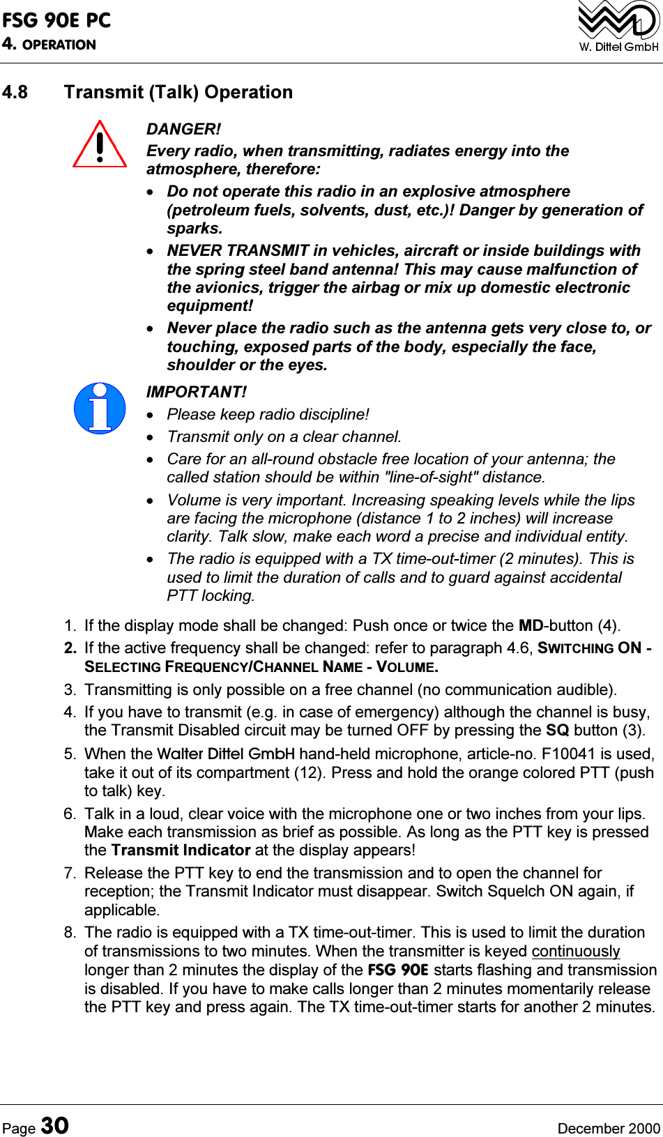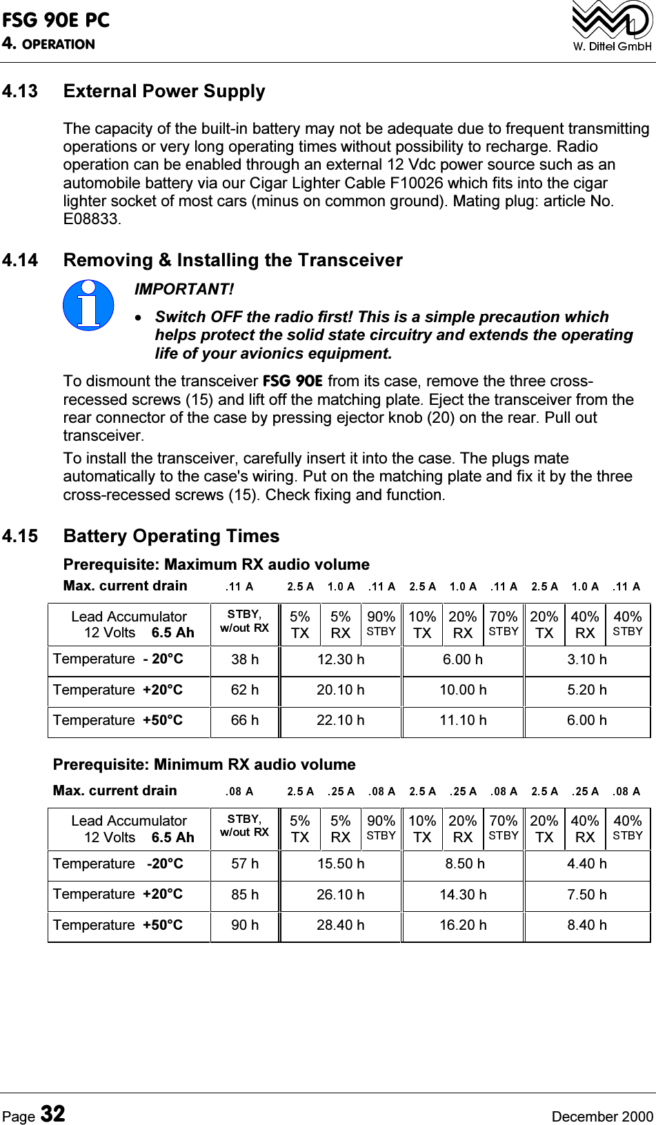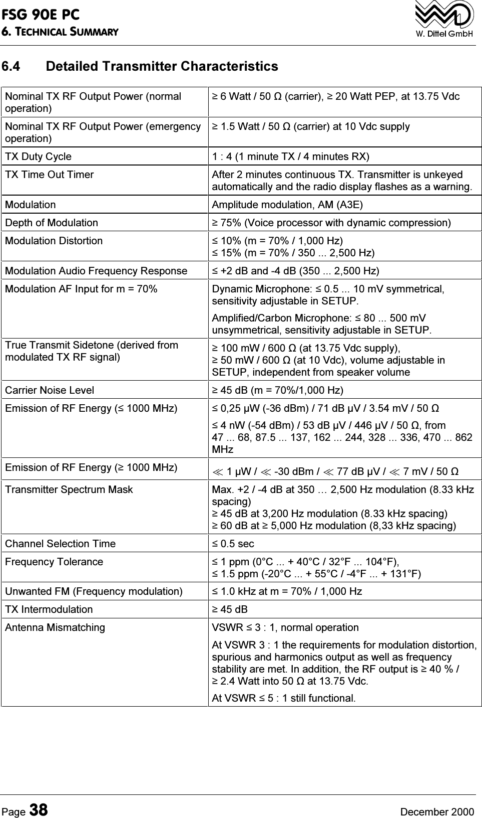 ![)6*(3&7(&+1,&$/6800$5<3DJH 'HFHPEHU 'HWDLOHG7UDQVPLWWHU&KDUDFWHULVWLFV1RPLQDO7;5)2XWSXW3RZHUQRUPDORSHUDWLRQ:DWWFDUULHU:DWW3(3DW9GF1RPLQDO7;5)2XWSXW3RZHUHPHUJHQF\RSHUDWLRQ:DWWFDUULHUDW9GFVXSSO\7;'XW\&\FOH PLQXWH7;PLQXWHV5;7;7LPH2XW7LPHU $IWHUPLQXWHVFRQWLQXRXV7;7UDQVPLWWHULVXQNH\HGDXWRPDWLFDOO\DQGWKHUDGLRGLVSOD\IODVKHVDVDZDUQLQJ0RGXODWLRQ $PSOLWXGHPRGXODWLRQ$0$('HSWKRI0RGXODWLRQ 9RLFHSURFHVVRUZLWKG\QDPLFFRPSUHVVLRQ0RGXODWLRQ'LVWRUWLRQ P +]P +]0RGXODWLRQ$XGLR)UHTXHQF\5HVSRQVH G%DQGG%+]0RGXODWLRQ$),QSXWIRUP '\QDPLF0LFURSKRQHP9V\PPHWULFDOVHQVLWLYLW\DGMXVWDEOHLQ6(783$PSOLILHG&DUERQ0LFURSKRQHP9XQV\PPHWULFDOVHQVLWLYLW\DGMXVWDEOHLQ6(7837UXH7UDQVPLW6LGHWRQHGHULYHGIURPPRGXODWHG7;5)VLJQDO P:DW9GFVXSSO\P:DW9GFYROXPHDGMXVWDEOHLQ6(783LQGHSHQGHQWIURPVSHDNHUYROXPH&DUULHU1RLVH/HYHO G%P +](PLVVLRQRI5)(QHUJ\0+] :G%PG%9P9Q:G%PG%99IURP0+](PLVVLRQRI5)(QHUJ\0+] : G%P G%9 P97UDQVPLWWHU6SHFWUXP0DVN 0D[G%DW«+]PRGXODWLRQN+]VSDFLQJG%DW+]PRGXODWLRQN+]VSDFLQJG%DW+]PRGXODWLRQN+]VSDFLQJ&KDQQHO6HOHFWLRQ7LPH VHF)UHTXHQF\7ROHUDQFH SSP&&))SSP&&))8QZDQWHG)0)UHTXHQF\PRGXODWLRQ N+]DWP +]7;,QWHUPRGXODWLRQ G%$QWHQQD0LVPDWFKLQJ 96:5QRUPDORSHUDWLRQ$W96:5WKHUHTXLUHPHQWVIRUPRGXODWLRQGLVWRUWLRQVSXULRXVDQGKDUPRQLFVRXWSXWDVZHOODVIUHTXHQF\VWDELOLW\DUHPHW,QDGGLWLRQWKH5)RXWSXWLV:DWWLQWRDW9GF$W96:5VWLOOIXQFWLRQDO](https://usermanual.wiki/f-u-n-k-e-AVIONICS/FSG90.FSG-90EPC-Portable-case-manual-part-two/User-Guide-169891-Page-14.png)