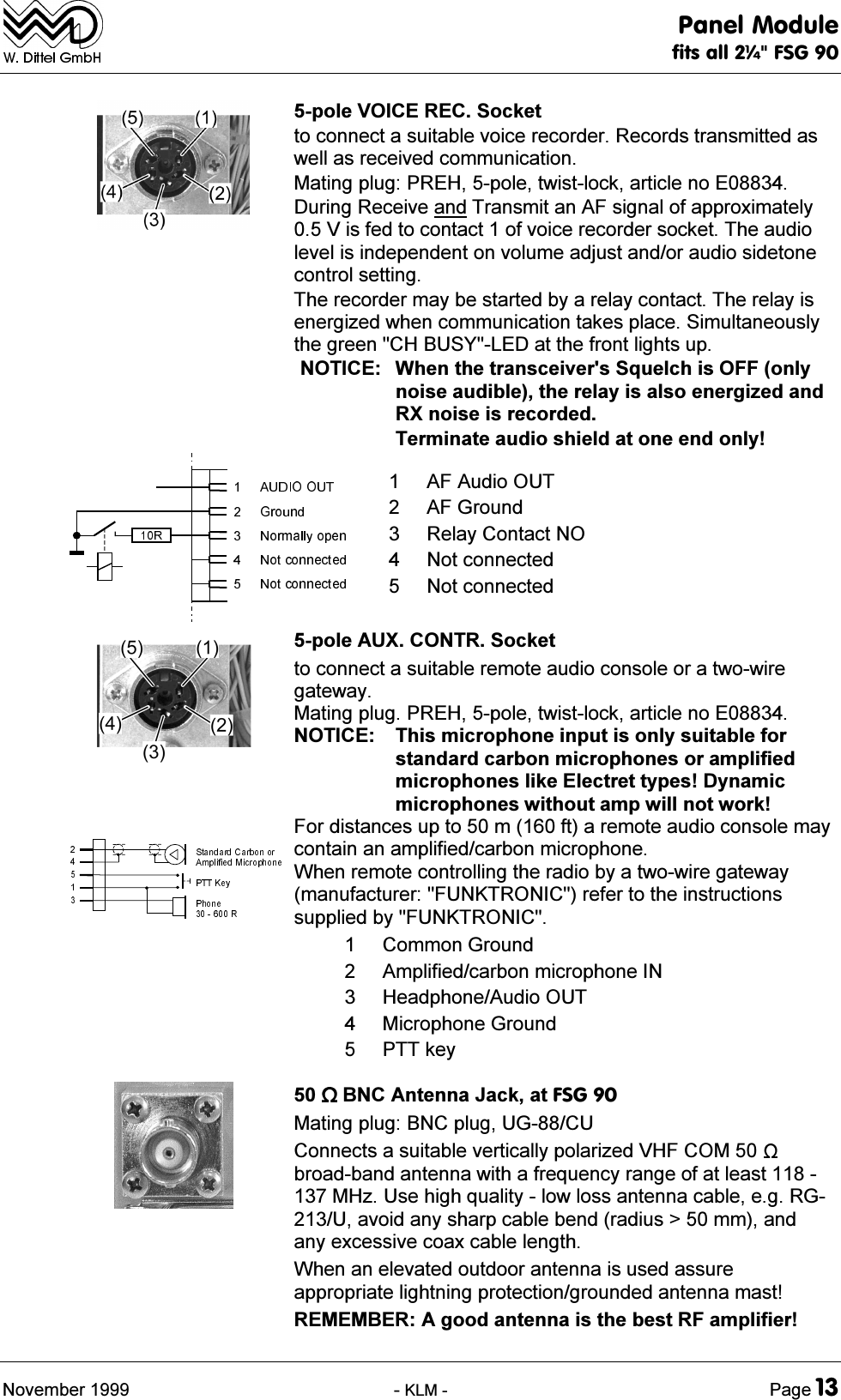 ![3DQHO0RGXOHILWVDOOõ)6*1RYHPEHU ./0 3DJHSROH92,&(5(&6RFNHWWRFRQQHFWDVXLWDEOHYRLFHUHFRUGHU5HFRUGVWUDQVPLWWHGDVZHOODVUHFHLYHGFRPPXQLFDWLRQ0DWLQJSOXJ35(+SROHWZLVWORFNDUWLFOHQR('XULQJ5HFHLYHDQG7UDQVPLWDQ$)VLJQDORIDSSUR[LPDWHO\9LVIHGWRFRQWDFWRIYRLFHUHFRUGHUVRFNHW7KHDXGLROHYHOLVLQGHSHQGHQWRQYROXPHDGMXVWDQGRUDXGLRVLGHWRQHFRQWUROVHWWLQJ7KHUHFRUGHUPD\EHVWDUWHGE\DUHOD\FRQWDFW7KHUHOD\LVHQHUJL]HGZKHQFRPPXQLFDWLRQWDNHVSODFH6LPXOWDQHRXVO\WKHJUHHQ&+%86</('DWWKHIURQWOLJKWVXS127,&( :KHQWKHWUDQVFHLYHUV6TXHOFKLV2))RQO\QRLVHDXGLEOHWKHUHOD\LVDOVRHQHUJL]HGDQG5;QRLVHLVUHFRUGHG7HUPLQDWHDXGLRVKLHOGDWRQHHQGRQO\ $)$XGLR287 $)*URXQG 5HOD\&RQWDFW12 1RWFRQQHFWHG 1RWFRQQHFWHGSROH$8;&21756RFNHWWRFRQQHFWDVXLWDEOHUHPRWHDXGLRFRQVROHRUDWZRZLUHJDWHZD\0DWLQJSOXJ35(+SROHWZLVWORFNDUWLFOHQR(127,&( 7KLVPLFURSKRQHLQSXWLVRQO\VXLWDEOHIRUVWDQGDUGFDUERQPLFURSKRQHVRUDPSOLILHGPLFURSKRQHVOLNH(OHFWUHWW\SHV'\QDPLFPLFURSKRQHVZLWKRXWDPSZLOOQRWZRUN)RUGLVWDQFHVXSWRPIWDUHPRWHDXGLRFRQVROHPD\FRQWDLQDQDPSOLILHGFDUERQPLFURSKRQH:KHQUHPRWHFRQWUROOLQJWKHUDGLRE\DWZRZLUHJDWHZD\PDQXIDFWXUHU)81.7521,&UHIHUWRWKHLQVWUXFWLRQVVXSSOLHGE\)81.7521,& &RPPRQ*URXQG $PSOLILHGFDUERQPLFURSKRQH,1 +HDGSKRQH$XGLR287 0LFURSKRQH*URXQG377NH\ %1&$QWHQQD-DFNDW)6*0DWLQJSOXJ%1&SOXJ8*&8&RQQHFWVDVXLWDEOHYHUWLFDOO\SRODUL]HG9+)&20EURDGEDQGDQWHQQDZLWKDIUHTXHQF\UDQJHRIDWOHDVW0+]8VHKLJKTXDOLW\ORZORVVDQWHQQDFDEOHHJ5*8DYRLGDQ\VKDUSFDEOHEHQGUDGLXV!PPDQGDQ\H[FHVVLYHFRD[FDEOHOHQJWK:KHQDQHOHYDWHGRXWGRRUDQWHQQDLVXVHGDVVXUHDSSURSULDWHOLJKWQLQJSURWHFWLRQJURXQGHGDQWHQQDPDVW5(0(0%(5$JRRGDQWHQQDLVWKHEHVW5)DPSOLILHU](https://usermanual.wiki/f-u-n-k-e-AVIONICS/FSG90.Frontpanel-Module-without-case-part-one/User-Guide-169914-Page-13.png)