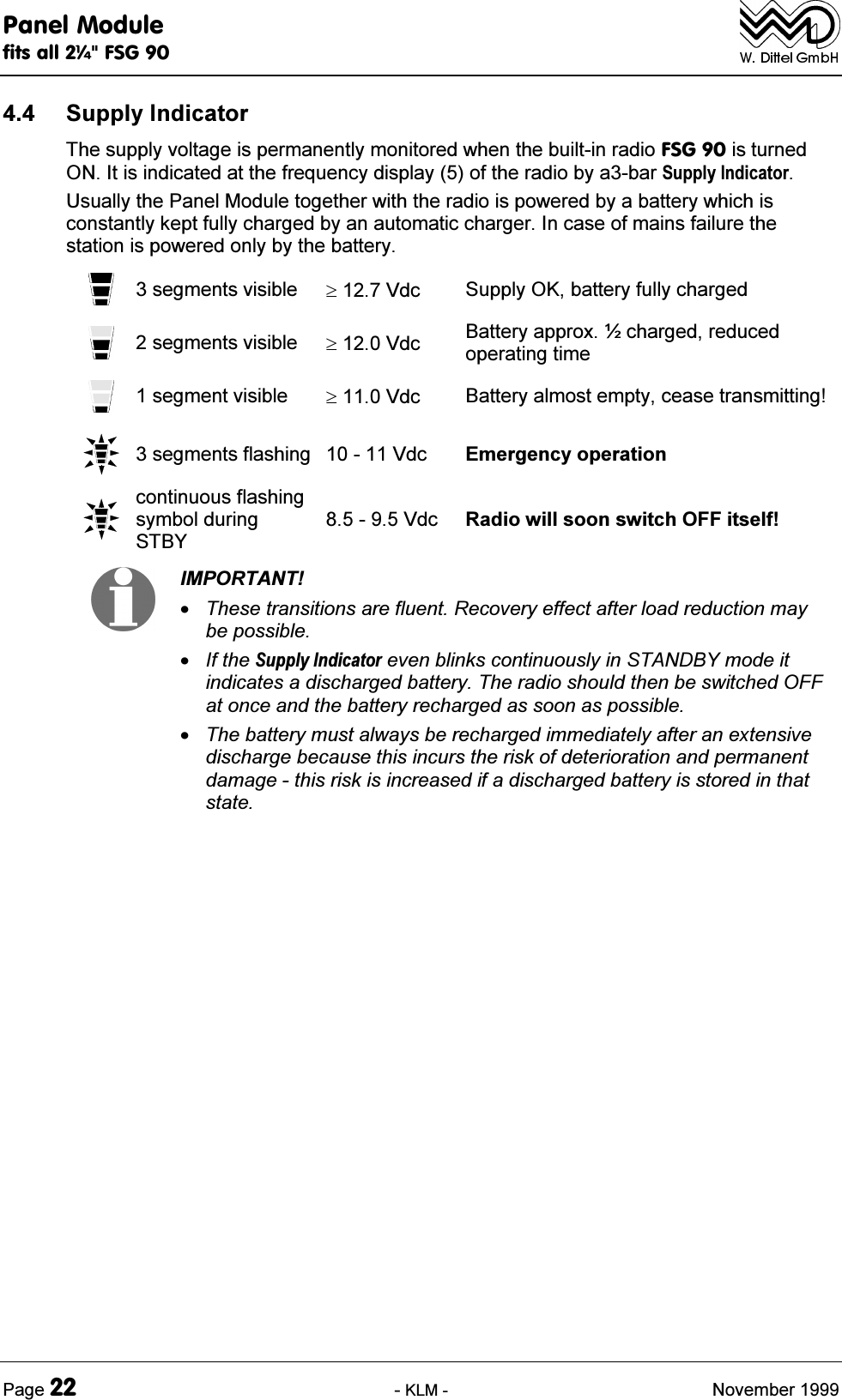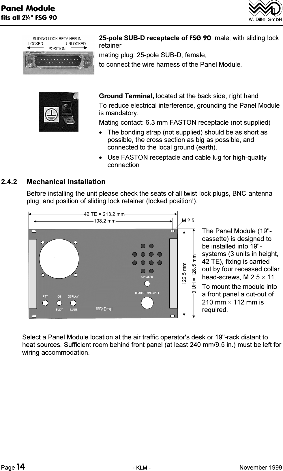 ![3DQHO0RGXOHILWVDOOõ)6*1RYHPEHU ./0 3DJH6(&7,21*(1(5$/'(6&5,37,21 ,QWURGXFWLRQ7KLV2SHUDWRUV0DQXDO%$(FRQWDLQVLQVWUXFWLRQVDQGGHVFULSWLRQVIRUDSSOLFDWLRQLQVWDOODWLRQDQGRSHUDWLRQRIWKH3DQHO0RGXOHWRJHWKHUZLWKD9+)$0DLUEDQGWUDQVFHLYHU)6*;RI:DOWHU'LWWHO*PE+'/DQGVEHUJ*HUPDQ\ $SSOLFDWLRQ'HVFULSWLRQRIWKH3DQHO0RGXOH7KH3DQHO0RGXOHZDVGHVLJQHGWRRSHUDWHHYHU\óURXQGIURQWSDQHO)6*;9+)$0DLUEDQGUDGLRRXWRIWKH)6*6\VWHPDVVWDWLRQDU\XQLWDQGWRIXOILOWKHUHTXLUHPHQWVRIDLUWUDIILFFRQWURO7KH3DQHO0RGXOHFDVVHWWHLVLQWHQGHGWREHLQVWDOOHGLQWRDQRSHUDWRUVGHVNRUDUDFNDVPDLQRUEDFNXSXQLW6XSSO\LQJWKHUDGLRIURPD9GFDFFXPXODWRURIVXIILFLHQWFDSDFLW\LQFRQQHFWLRQZLWKDQDXWRPDWLFEDWWHU\FKDUJHUDOORZVLQGHSHQGHQWRSHUDWLRQIURPPDLQVIRUDFHUWDLQWLPH7KH:DWW'XDO0RGHUDGLR)6*DUWLFOHQR)LVZRUNLQJZLWKLQWKHDLUEDQGIUHTXHQF\UDQJHRI0+]WR0+]LQHLWKHUFRPELQHGN+]N+]LQFUHPHQWVFKDQQHOVRUN+]RQO\LQFUHPHQWVFKDQQHOV7KHXQLWIHDWXUHVQRQYRODWLOHFKDQQHOPHPRULHVLQHDFKPRGH7KH:DWW'XDO0RGHUDGLR)6*+DUWLFOHQR)LVZRUNLQJZLWKLQWKHDLUEDQGIUHTXHQF\UDQJHRI0+]WR0+]LQHLWKHUFRPELQHGN+]N+]LQFUHPHQWVFKDQQHOVRUN+]RQO\LQFUHPHQWVFKDQQHOV7KHXQLWIHDWXUHVQRQYRODWLOHFKDQQHOPHPRULHVLQHDFKPRGH)RUDOO)6*W\SHVWKHRSHUDWLQJPRGHLV6LPSOH[LHWUDQVPLWWLQJRUUHFHLYLQJRQO\LQWXUQV:LWKDQ5)RXWSXWSRZHURIRU:DWWDQGKLJKUHFHLYHUVHQVLWLYLW\WKHVHUDGLRVDUHH[FHOOHQWO\VXLWDEOHIRUEDVHRSHUDWLRQ7KH3DQHO0RGXOHXQLWIHDWXUHVDWWKHIURQWD377NH\D&+$11(/%86<LQGLFDWRUDIUHTXHQF\GLVSOD\LOOXPLQDWLRQVZLWFK212))DSROHMDFNWRFRQQHFWDG\QDPLFPLFURSKRQHZLWKRUZLWKRXW377NH\KHDGSKRQHRUKHDGVHWDQGDVSHDNHUZLWKDQ212))VZLWFK$WWKHUHDUIRXUWZLVWORFNVRFNHWVDUHORFDWHGWRFRQQHFW9GFVXSSO\EDWWHU\FKDUJHU9RLFH5HFRUGHUDQGDUHPRWHDXGLRSDQHO,QWHUIDFLQJWRWKHUDGLRLVGRQHYLDFDEOHKDUQHVVDQGSROH68%'UHFHSWDFOHWKHDQWHQQDLVSOXJJHGWRWKH)6*VDQWHQQD%1&MDFN (TXLSPHQWUHTXLUHGEXWQRWVXSSOLHG 9+)$0&20DLUEDQGWUDQVFHLYHU)6*;óURXQGIURQWSDQHO 9+)DQWHQQDLQWKHIUHTXHQF\UDQJHRIDWOHDVWWR0+]2KP:HUHFRPPHQGRXUZHDWKHUSURRIJODVVILEHUUHLQIRUFHGIROGHGWRSURRIDQWHQQD8+)FRQQHFWRUDUWLFOHQR: $QWHQQDFDEOH5*8ORZORVV8+)DQG%1&SOXJ '\QDPLFPLFURSKRQHWR2KPHJKDQGKHOGPLFURSKRQHZLWK377NH\DUWLFOHQR)RUD6WDQGDUGFDUERQPLFURSKRQHZLWKRUZLWKRXW377NH\QRWLFHVHSDUDWHPLFURSKRQHLQSXWVIRUG\QDPLFDQGFDUERQDPSOLILHGPLFURSKRQH 3RZHUVXSSO\9GFRIVXIILFLHQWFDSDFLW\HJ%DWWHU\3RZHU6XSSO\9GF$KDUWLFOHQR) ,QWHUFRQQHFWLQJFDEOHPIWWRFRQQHFW%DWWHU\3RZHU6XSSO\WR3DQHO0RGXOHDUWLFOHQR) 0DWLQJSOXJVWRFRQQHFWUHPRWHDXGLRSDQHO9RLFHUHFRUGHUHWFDVUHTXLUHG $XWRPDWLFEDWWHU\FKDUJHUHJ'/DUWLFOHQR):KHQRSHUDWLQJWKHVWDWLRQRQD9GFVRXUFHDVXLWDEOH9GF9GFFRQYHUWHURIDWOHDVW$PSVPXVWEHXVHG](https://usermanual.wiki/f-u-n-k-e-AVIONICS/FSG90.Frontpanel-Module-without-case-part-one/User-Guide-169914-Page-7.png)