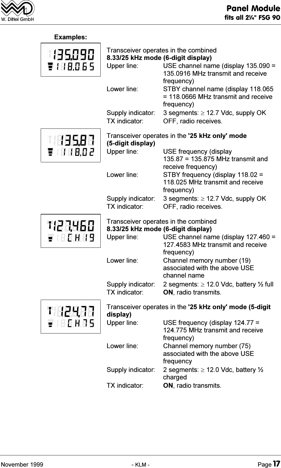 ![3DQHO0RGXOHILWVDOOõ)6*1RYHPEHU ./0 3DJH([DPSOHV7UDQVFHLYHURSHUDWHVLQWKHFRPELQHGN+]PRGHGLJLWGLVSOD\8SSHUOLQH 86(FKDQQHOQDPHGLVSOD\ 0+]WUDQVPLWDQGUHFHLYHIUHTXHQF\/RZHUOLQH 67%<FKDQQHOQDPHGLVSOD\ 0+]WUDQVPLWDQGUHFHLYHIUHTXHQF\6XSSO\LQGLFDWRU VHJPHQWV9GFVXSSO\2.7;LQGLFDWRU 2))UDGLRUHFHLYHV7UDQVFHLYHURSHUDWHVLQWKHN+]RQO\PRGHGLJLWGLVSOD\8SSHUOLQH 86(IUHTXHQF\GLVSOD\ 0+]WUDQVPLWDQGUHFHLYHIUHTXHQF\/RZHUOLQH 67%<IUHTXHQF\GLVSOD\ 0+]WUDQVPLWDQGUHFHLYHIUHTXHQF\6XSSO\LQGLFDWRU VHJPHQWV9GFVXSSO\2.7;LQGLFDWRU 2))UDGLRUHFHLYHV7UDQVFHLYHURSHUDWHVLQWKHFRPELQHGN+]PRGHGLJLWGLVSOD\8SSHUOLQH 86(FKDQQHOQDPHGLVSOD\ 0+]WUDQVPLWDQGUHFHLYHIUHTXHQF\/RZHUOLQH &KDQQHOPHPRU\QXPEHUDVVRFLDWHGZLWKWKHDERYH86(FKDQQHOQDPH6XSSO\LQGLFDWRU VHJPHQWV9GFEDWWHU\òIXOO7;LQGLFDWRU 21UDGLRWUDQVPLWV7UDQVFHLYHURSHUDWHVLQWKHN+]RQO\PRGHGLJLWGLVSOD\8SSHUOLQH 86(IUHTXHQF\GLVSOD\ 0+]WUDQVPLWDQGUHFHLYHIUHTXHQF\/RZHUOLQH &KDQQHOPHPRU\QXPEHUDVVRFLDWHGZLWKWKHDERYH86(IUHTXHQF\6XSSO\LQGLFDWRU VHJPHQWV9GFEDWWHU\òFKDUJHG7;LQGLFDWRU 21UDGLRWUDQVPLWV](https://usermanual.wiki/f-u-n-k-e-AVIONICS/FSG90.Frontpanel-Module-without-case-part-one/User-Guide-169914-Page-17.png)