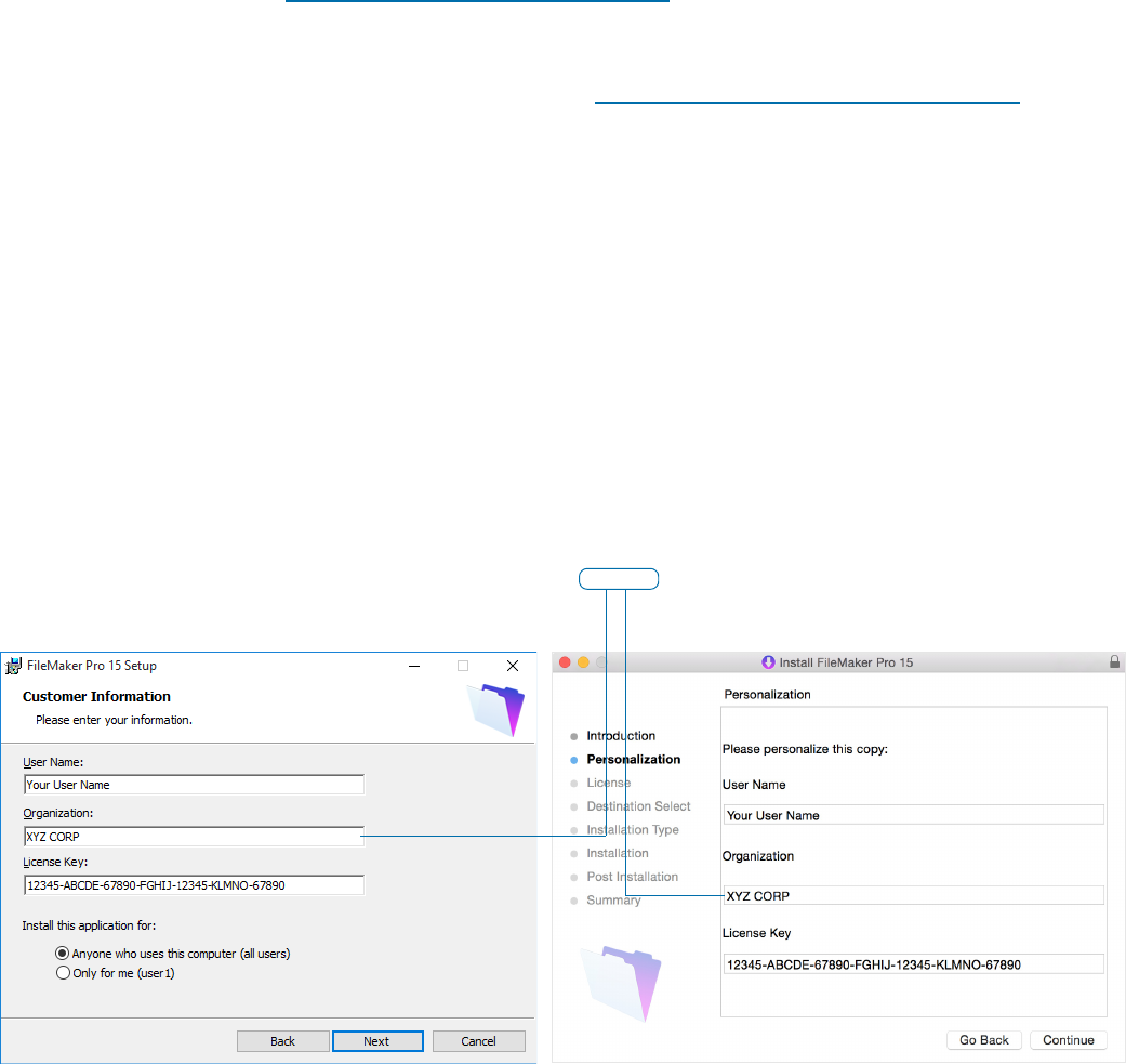 Before you install FileMaker Pro, make sure you have the license key ready. See “About the