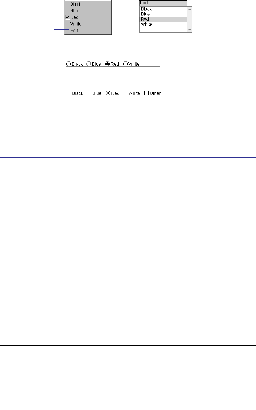 lists; Pop-up menus; Radio