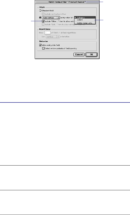 See also Checkboxes; Pop-up