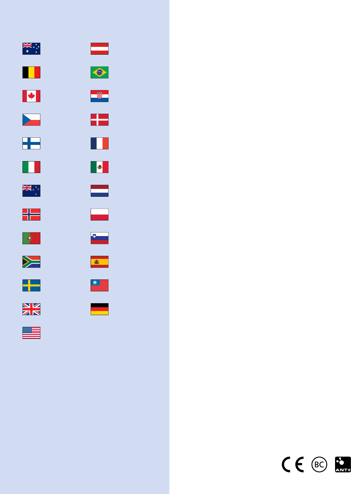 This product is ANT+® certified. Visit www.thisisant.com/directory for a list of compatible products and apps.