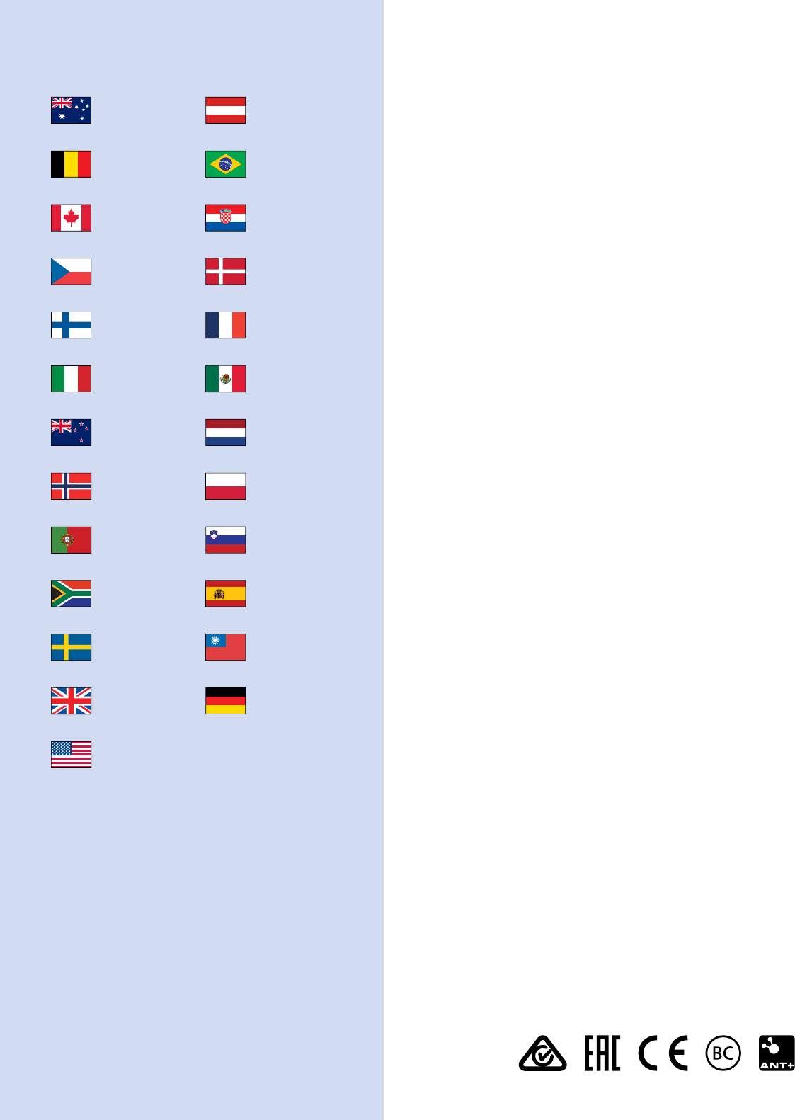This product is ANT+® certified. Go to www.thisisant.com/directory for a list of compatible products and apps.