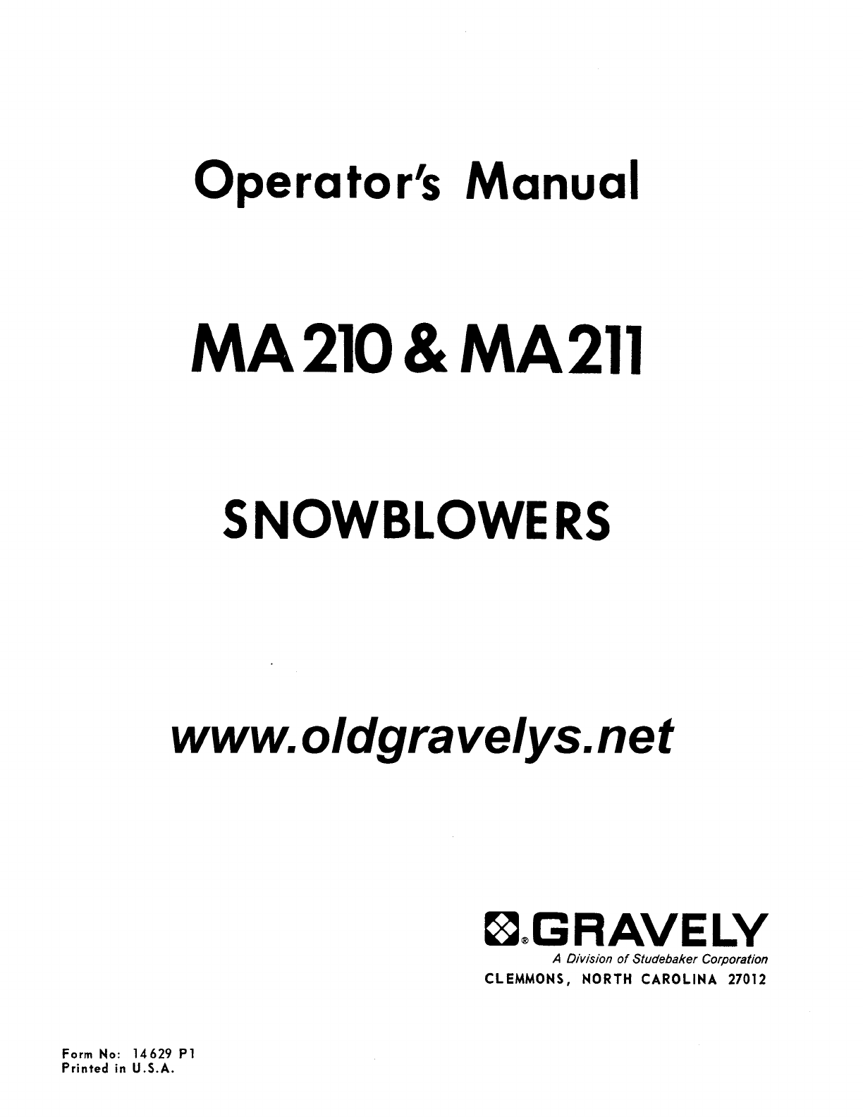 User Manual: gravely ma210 Gravely Snow Blower ma210 User Guide |