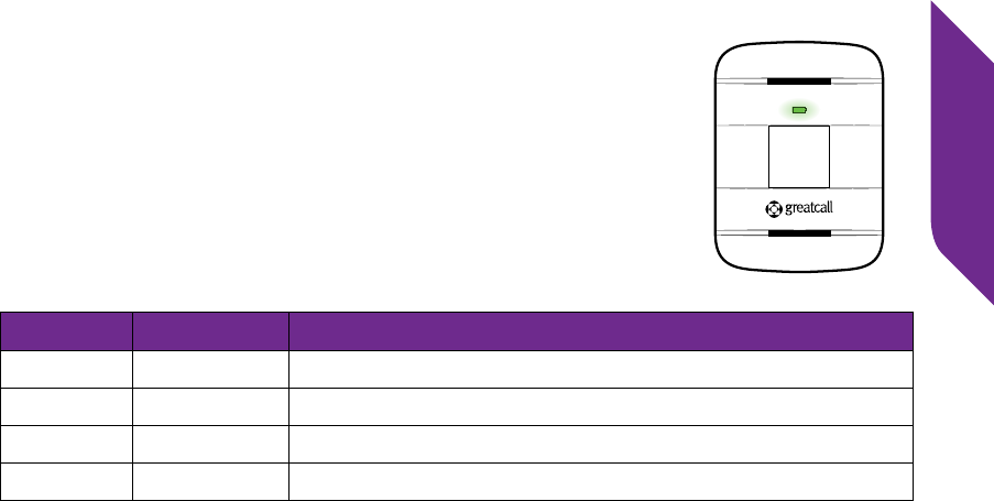 • Battery Indicator – Indicates when the battery is low, and shows that it is charging