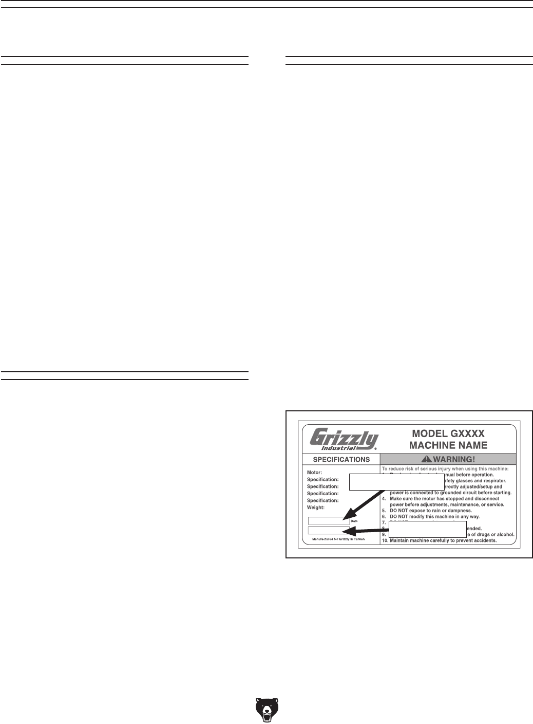 before resuming operations. For replacements, contact (800) 523-4777 or www.grizzly.com.
