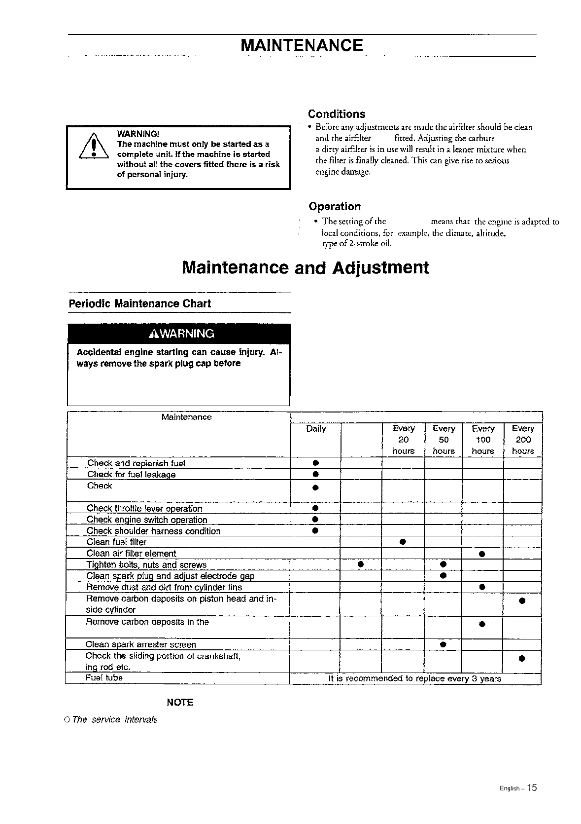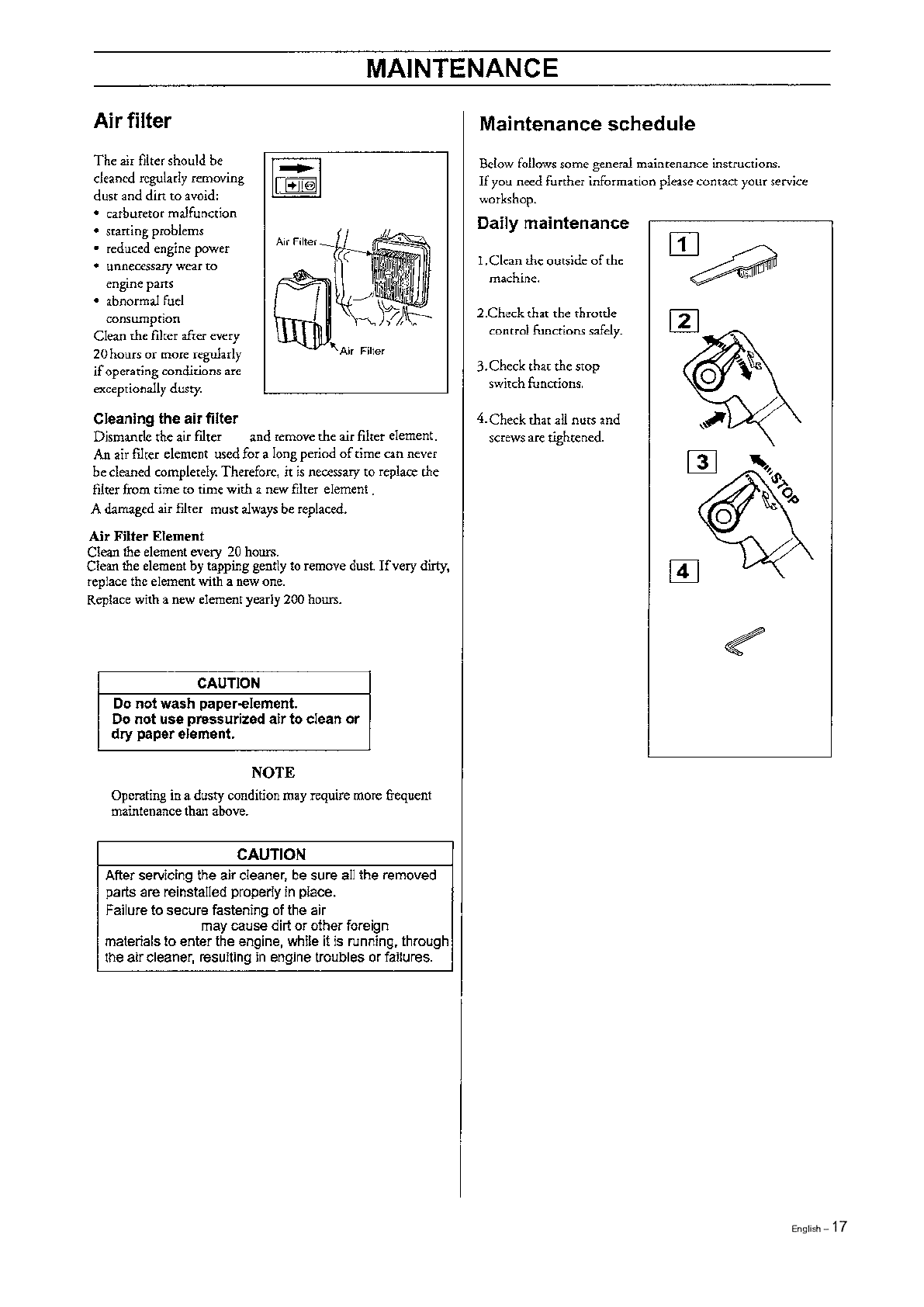 (*1) The air filter should be cleaned more freguently in very dusty conditions.