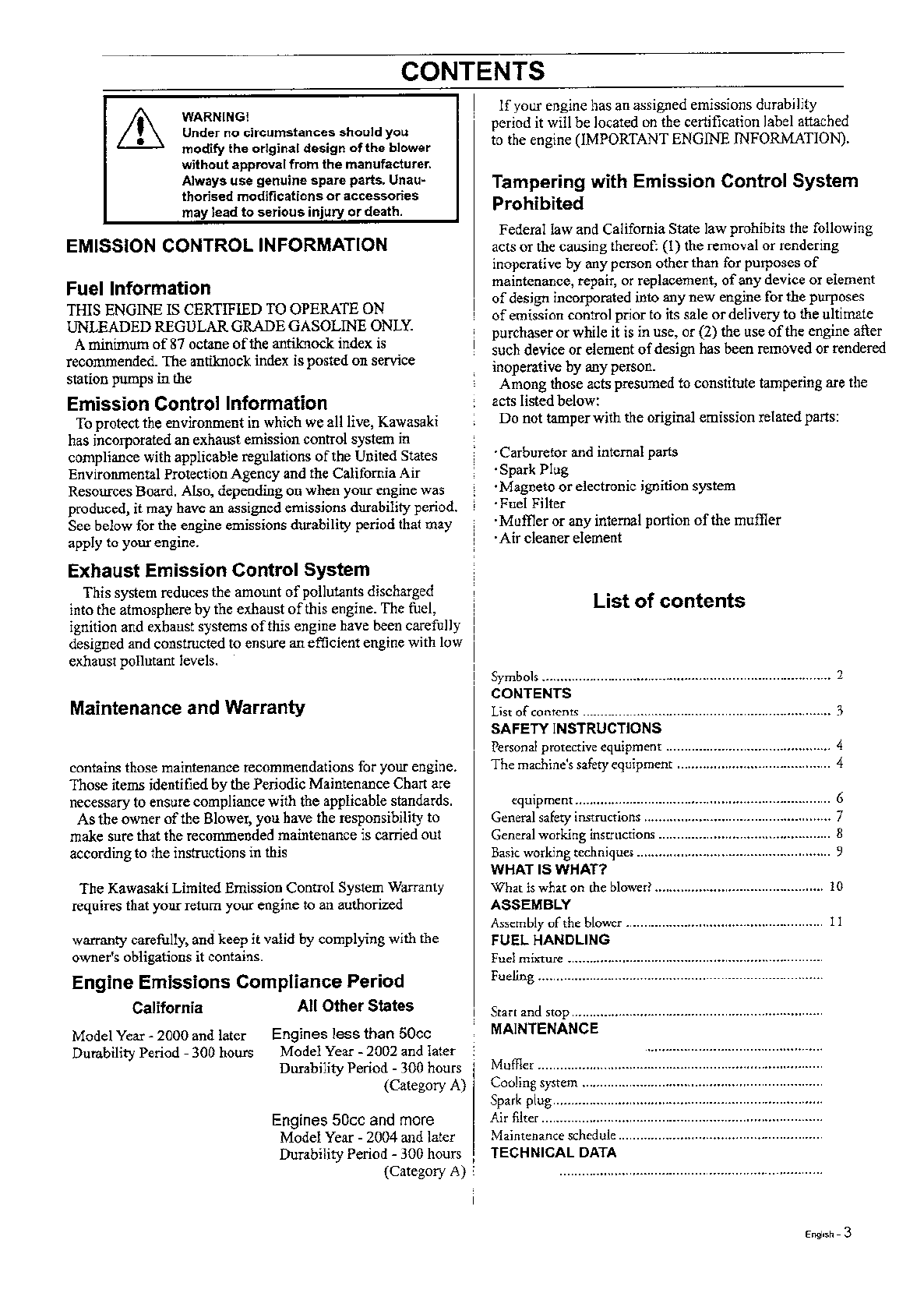 continue to have low emission levels. This Handling instructions