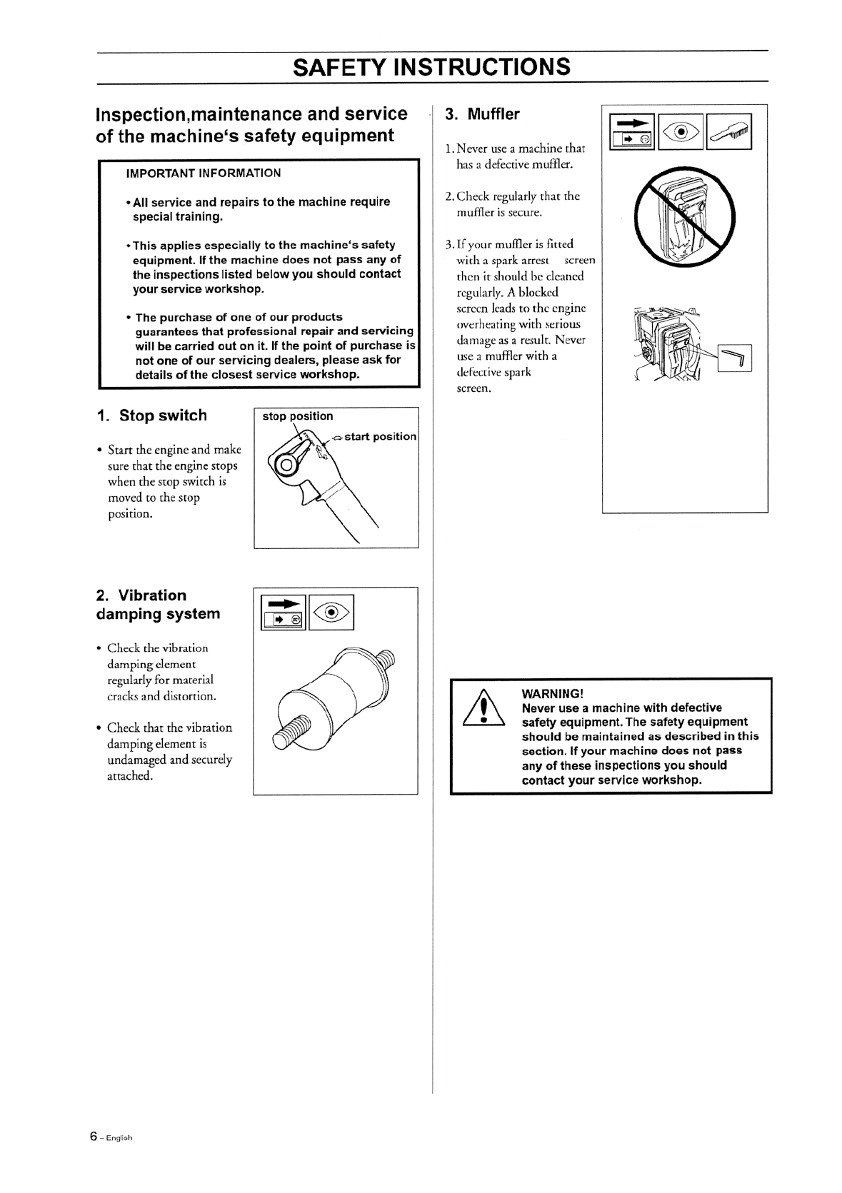 Inspection, maintenance and service of the machine's safety