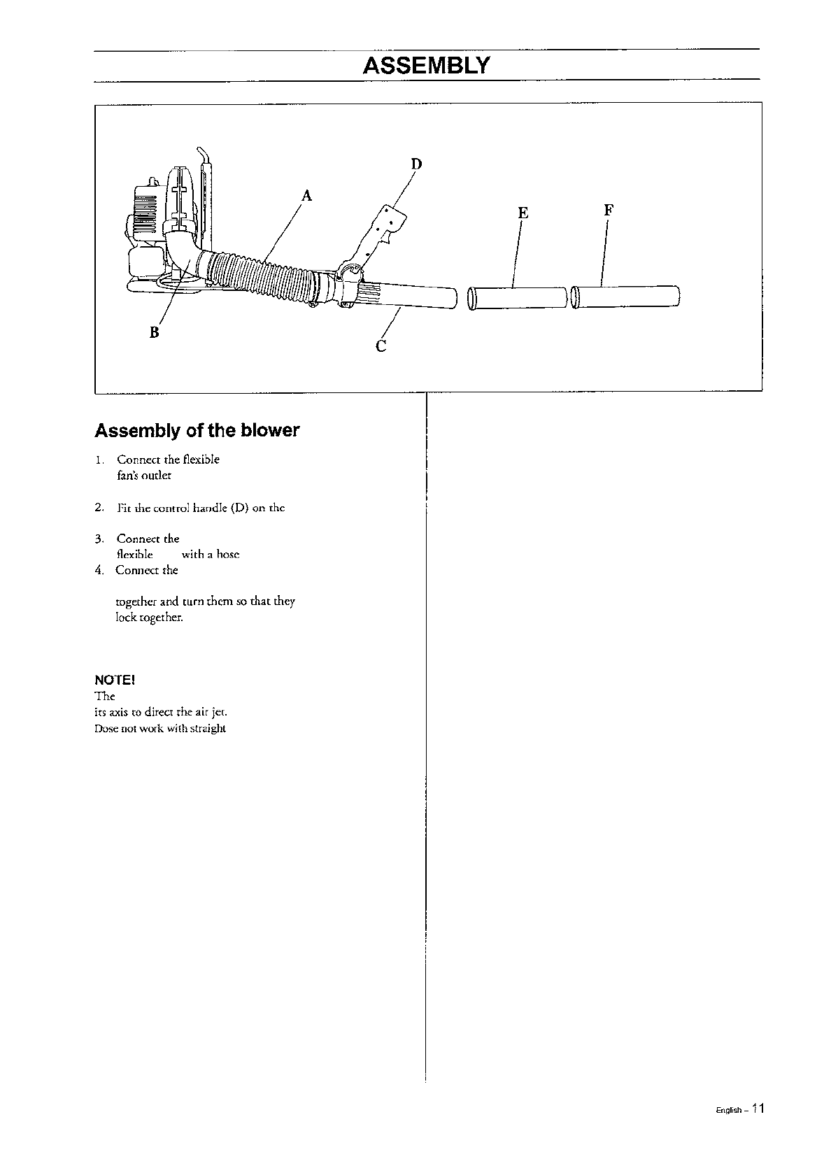and straight pipe (F). Push the pipes