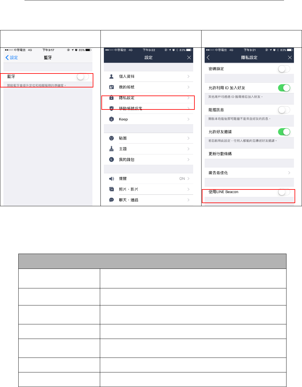 第一步:打開手機藍芽 第二步:打開 LINE 設定