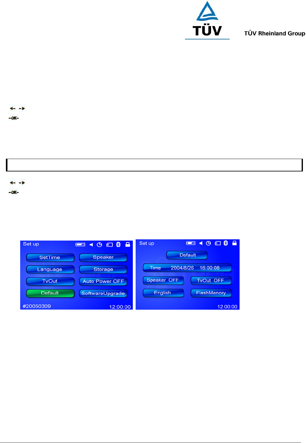 11. Go to the Bluetooth Stereo menu on the PMP and select Bluetooth “ON” by pressing OK button. Now, the