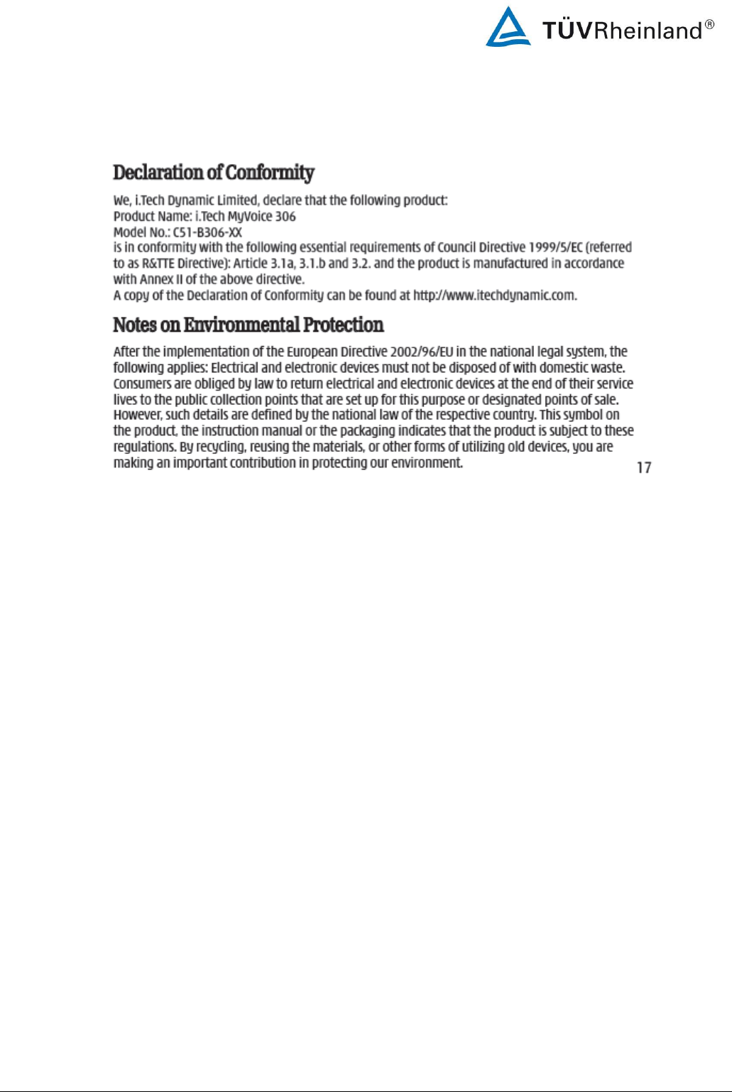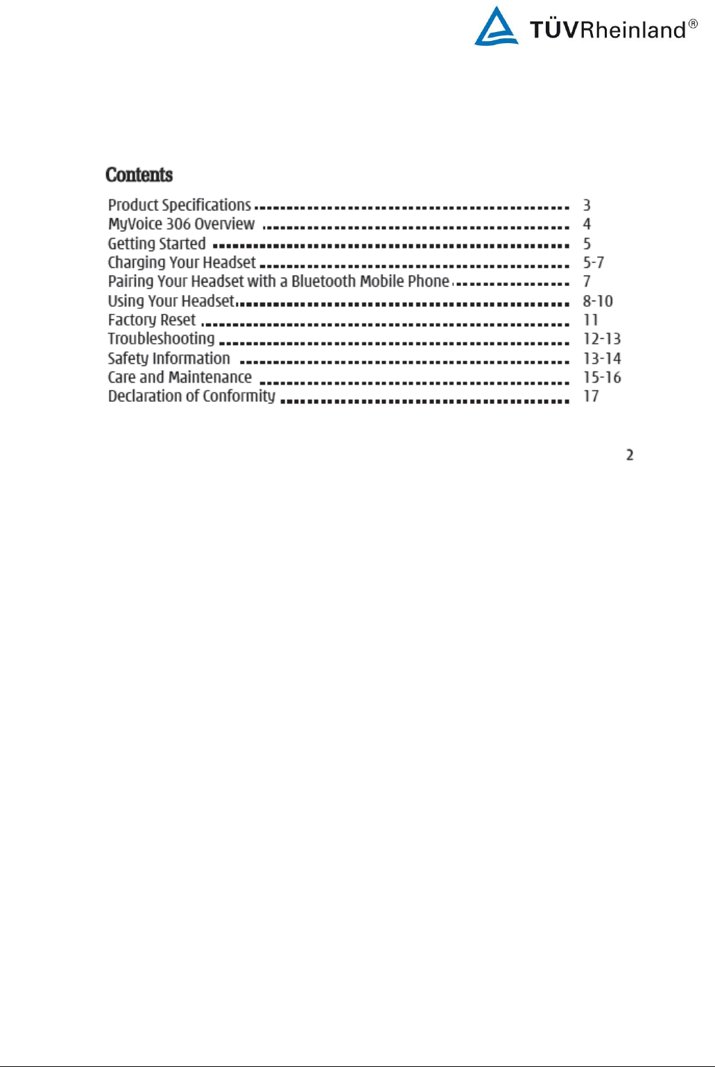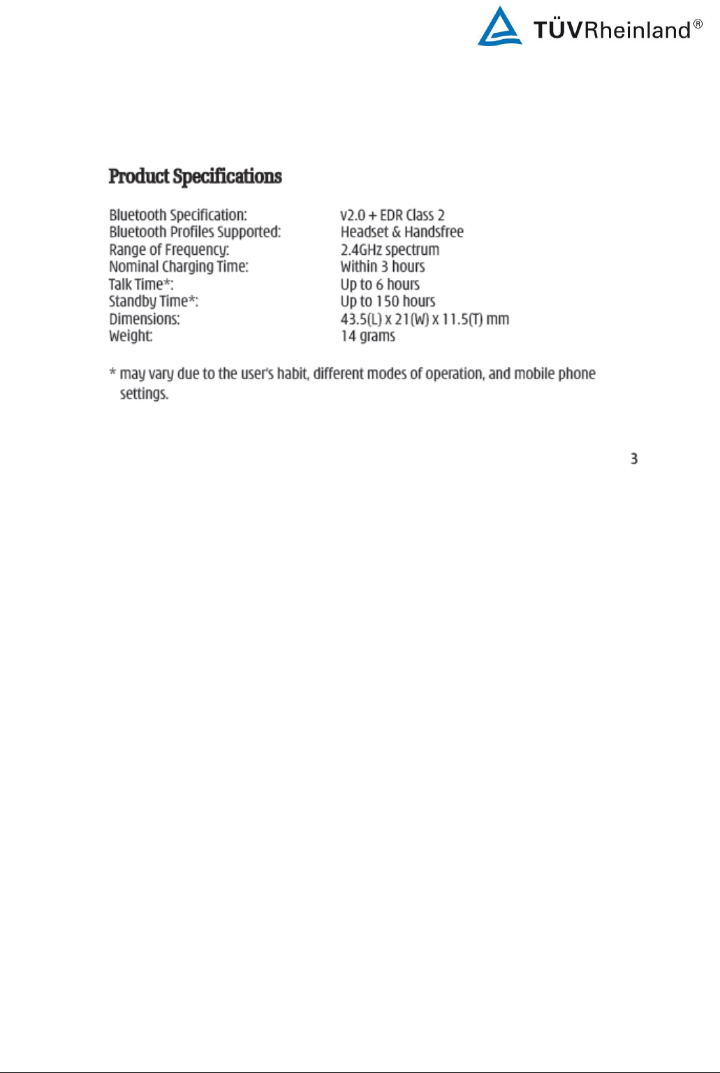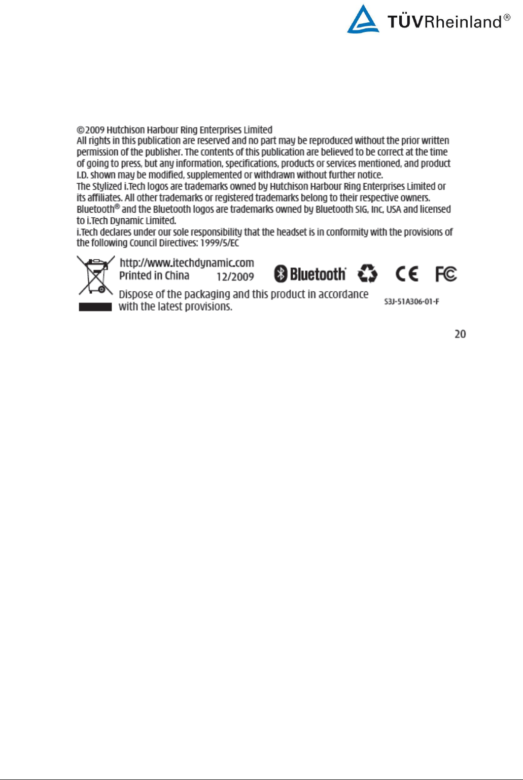 i Tech Dynamic C51-B306-XX Bluetooth Headset User Manual 14022813 001 B303 FCC report