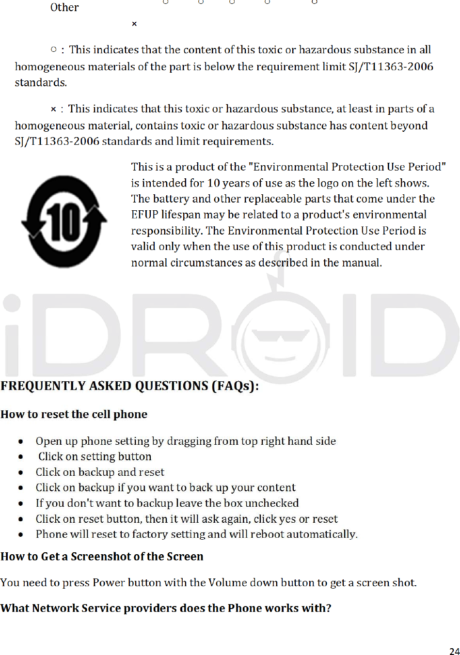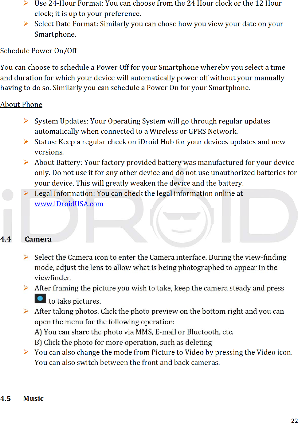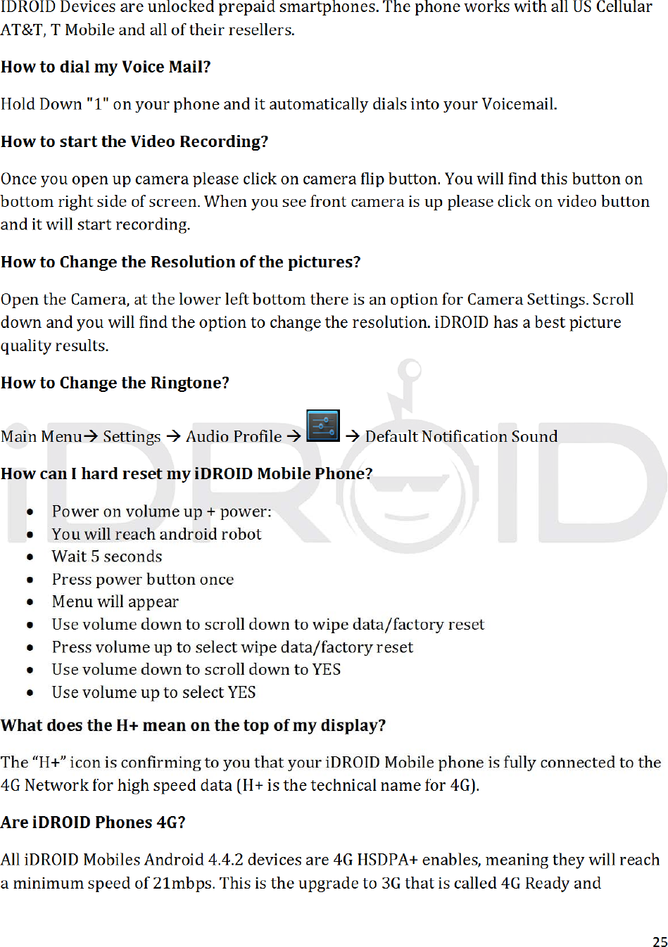 iDROID Inc. Mobile Phone USERS MANUAL