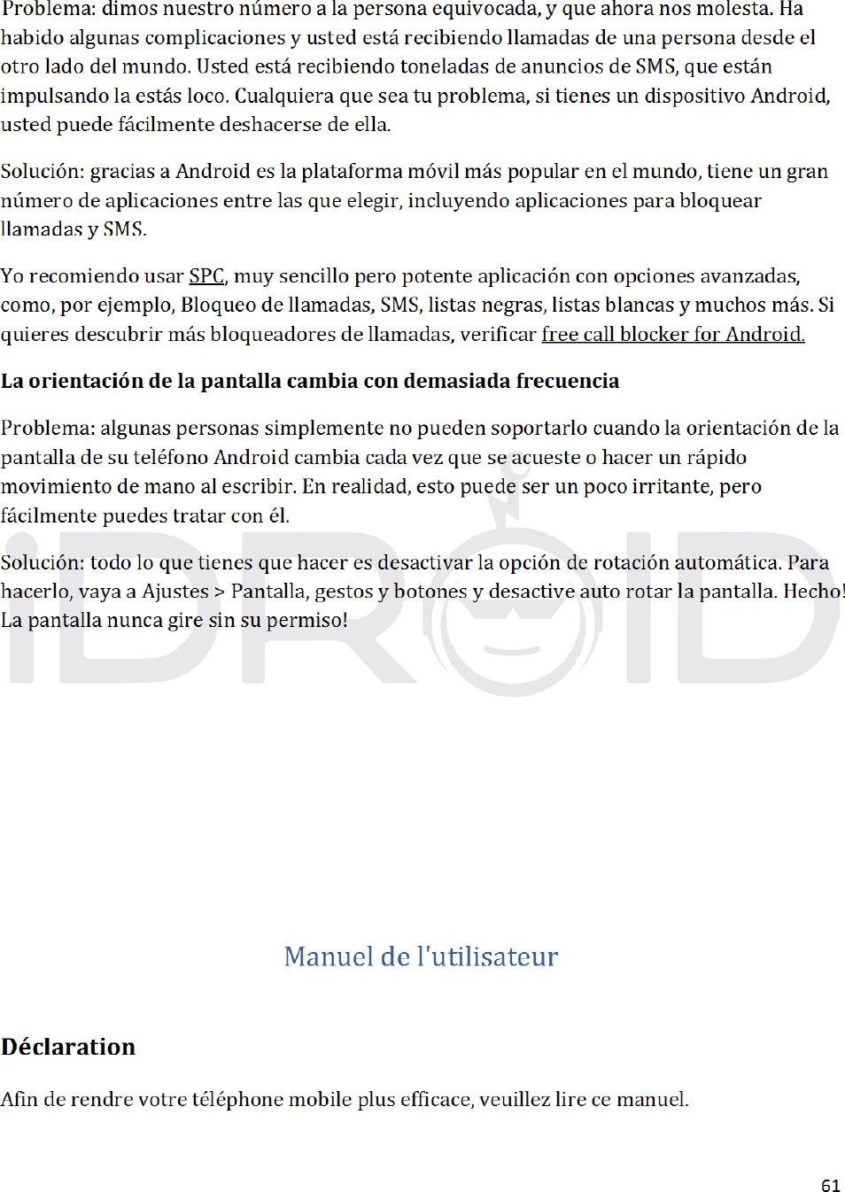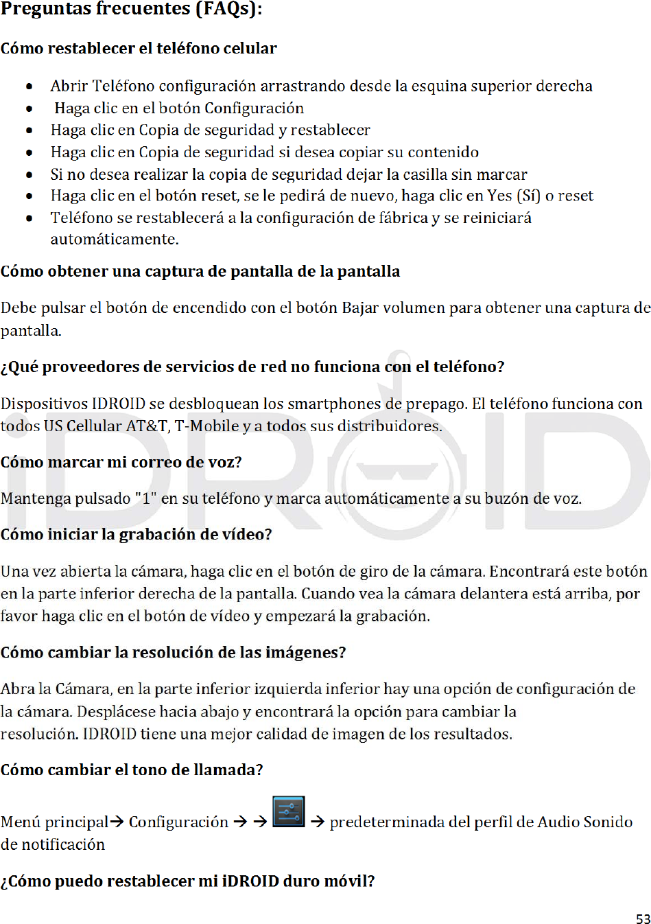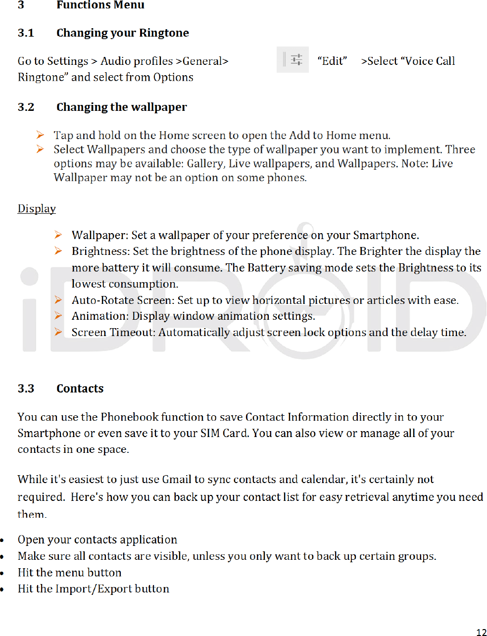 iDROID Inc. Mobile Phone USERS MANUAL