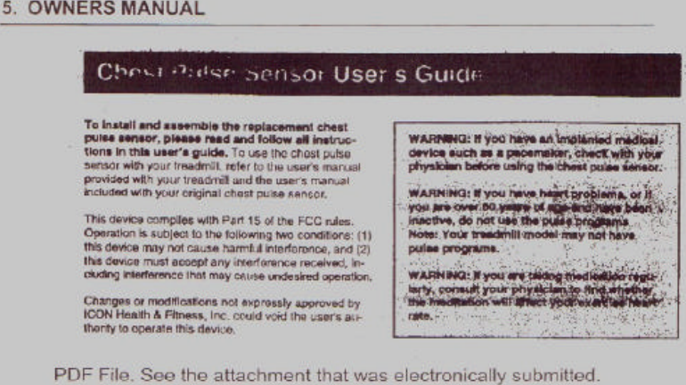 Icon Health and Fitness, Inc. pulse monitor Manual