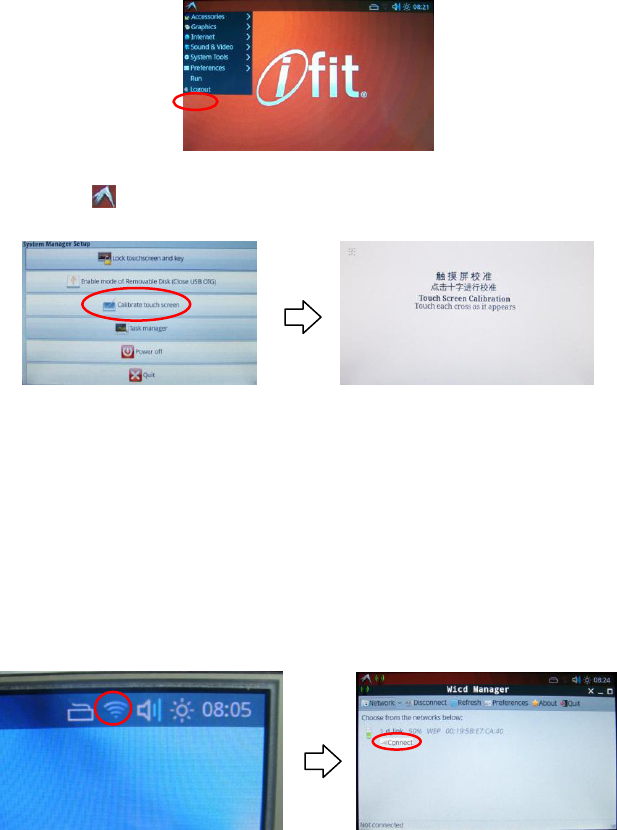 menu. Tap “Calibrate touch screen” and the screen will display as below: