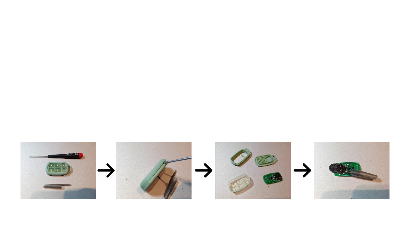 3. Separate the back and front shell. Remove the rubber insert and the remote circuit board. Do not set the circuit board down