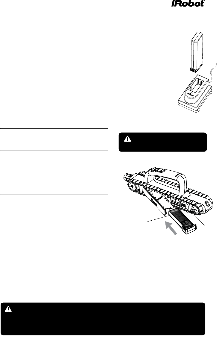 •  Use only genuine iRobot rechargeable Lithium-Ion batteries and charger with